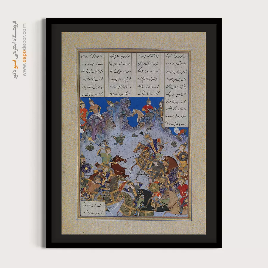در ظرافت خطوط و درخشش رنگها، روایت هزارساله هنر مینیاتور و نگارگری ایرانی زنده میشود. این تابلو نقاشی ایرانی، یادگاری فاخر از میراث فرهنگی ایران برای خانهای آراسته و روحنواز است.