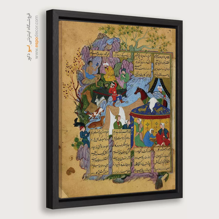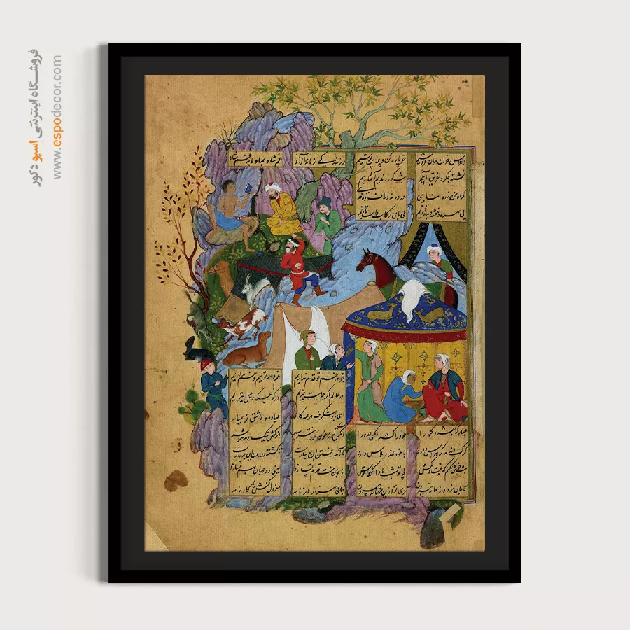 در ظرافت خطوط و درخشش رنگ‌ها، روایت هزارساله هنر مینیاتور و نگارگری ایرانی زنده می‌شود. این تابلو نقاشی ایرانی، یادگاری فاخر از میراث فرهنگی ایران برای خانه‌ای آراسته و روح‌نواز است.