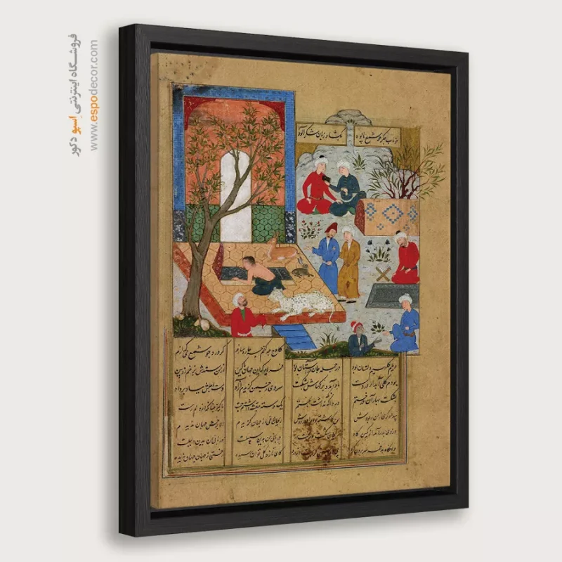 در دل هر نقش و رنگ، قصه‌ای کهن از سرزمین شعر و شکوه نهفته است. این تابلو نقاشی ایرانی برگرفته از اصالت نگارگری و ظرافت مینیاتورهای ماندگار، پلی میان تاریخ و دنیای امروز می‌سازد؛ گویی پنجره‌ای است به جهانی که در آن زیبایی و معنویت هم‌نشین‌اند.هر تابلو، برگ زرینی از نسخ خطی و هنر سنتی ایرانی است؛ سرشار از لطافت خطوط و رنگ‌هایی که به آرامی با چشم و دل سخن می‌گویند. با تماشای آن، می‌توان به عمق فرهنگ ایرانی سفر کرد و لمس کرد که چگونه گذر قرن‌ها نتوانسته فروغ این هنر جاودان را خاموش سازد.این تابلوها بر روی بوم‌های باکیفیت چاپ می‌شوند؛ بافت لطیف بوم و رنگ‌های زنده، جلوه‌ای طبیعی و هنری به اثر می‌بخشند. رنگ‌ها به گونه‌ای انتخاب شده‌اند که درخشان، ماندگار و مقاوم در برابر نور باشند؛ تا سالیان سال، زیبایی اصیل ایرانی در فضای خانه یا محل کارتان بدرخشد.فریم‌های محکم، ساختاری استوار به تابلو می‌بخشند و با طراحی ظریف خود، بر شکوه اثر می‌افزایند. سبک بودن تابلو و امکان نصب آسان، آن را برای هر نوع دکوراسیون مدرن یا کلاسیک مناسب می‌سازد. از اتاق نشیمن تا دفتر کار، این آثار همچون نگینی فاخر بر دیوار خواهند درخشید.هر اثر، فرصتی برای لمس دوباره‌ی هنر نگارگری و مینیاتور ایرانی است؛ هنری که در جزئی‌ترین خطوط، روح شاعرانه ایرانیان را بازمی‌تاباند. این تابلوها نه تنها تزیینی، بلکه یادآور هویت فرهنگی و زیبایی بی‌زمان ایران‌زمین‌اند.اگر به دنبال هدیه‌ای ماندگار یا اثری منحصر به فرد برای فضای زندگی‌تان هستید، این تابلو بوم نگارگری ایرانی انتخابی بی‌همتاست. ترکیب اصالت تاریخی با کیفیت مدرن چاپ، ارزش هنری و زیبایی را در یک قاب جاودانه به شما تقدیم می‌کند.