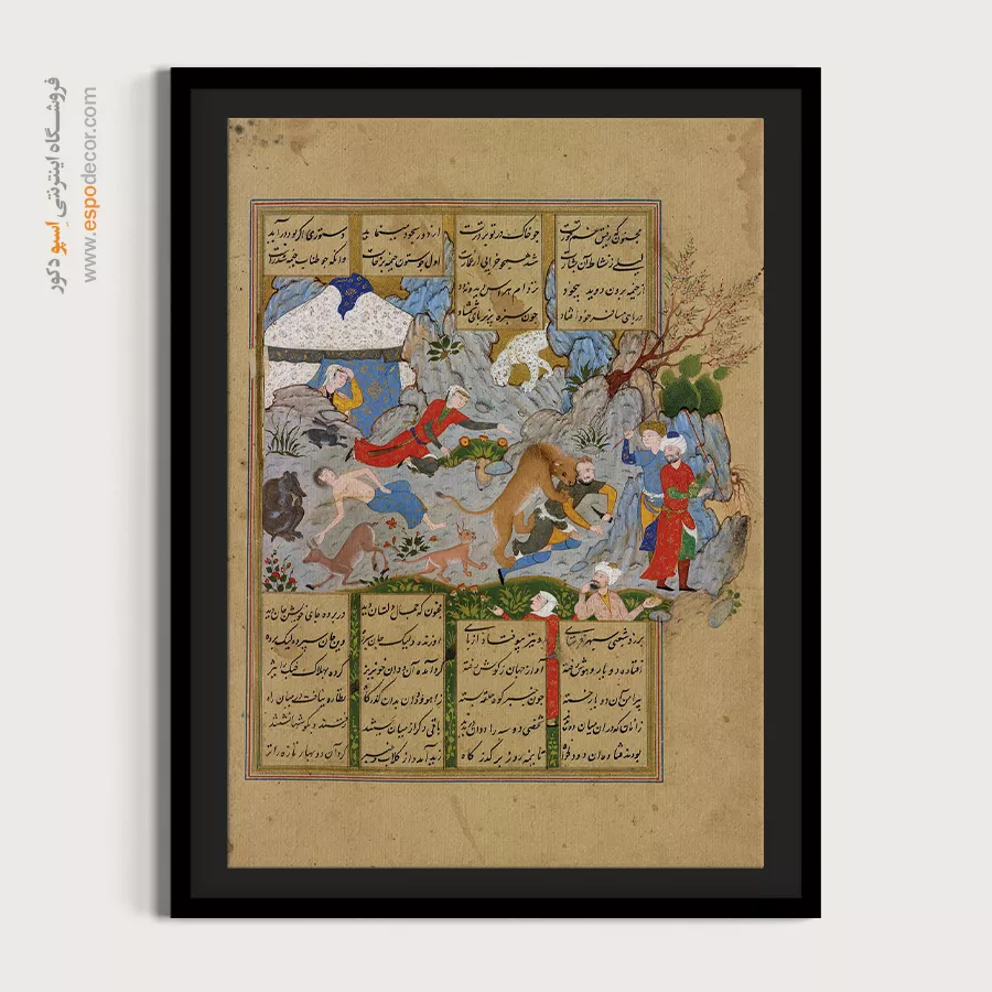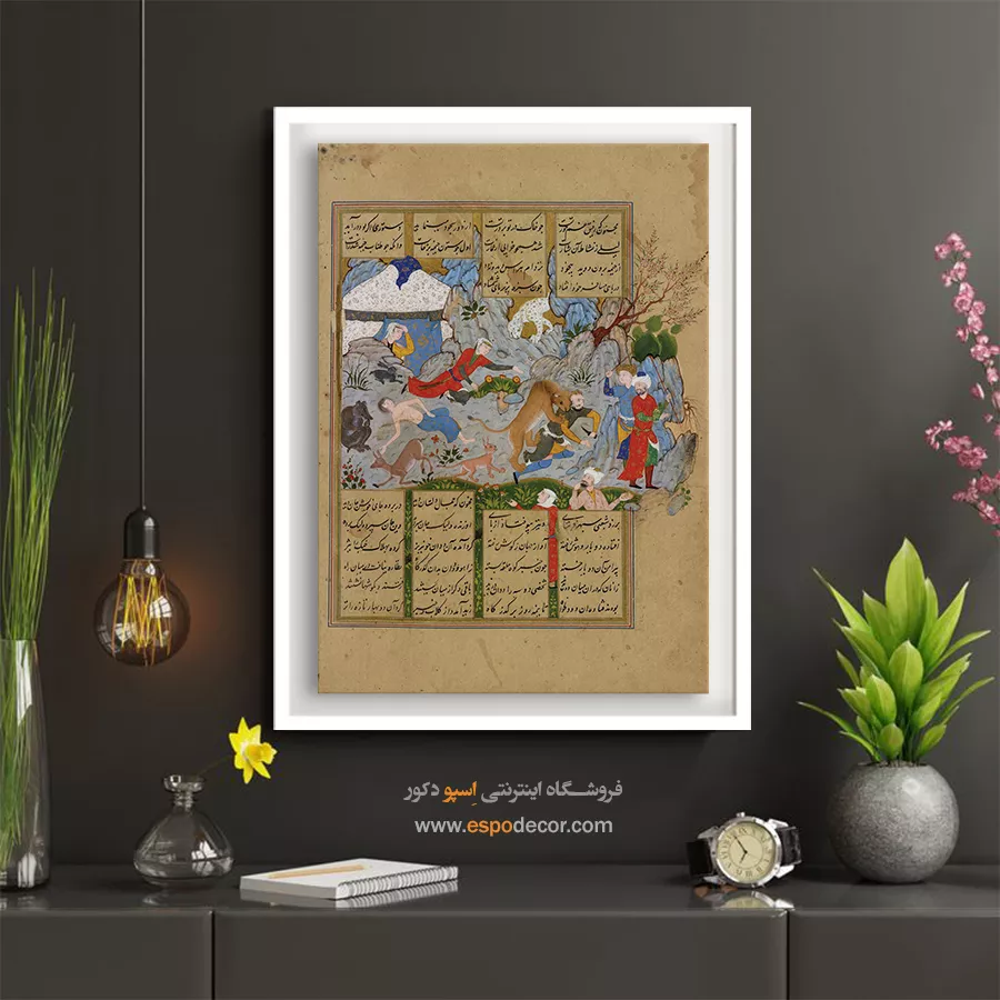 در ظرافت خطوط و درخشش رنگها، روایت هزارساله هنر مینیاتور و نگارگری ایرانی زنده میشود. این تابلو نقاشی ایرانی، یادگاری فاخر از میراث فرهنگی ایران برای خانهای آراسته و روحنواز است.
