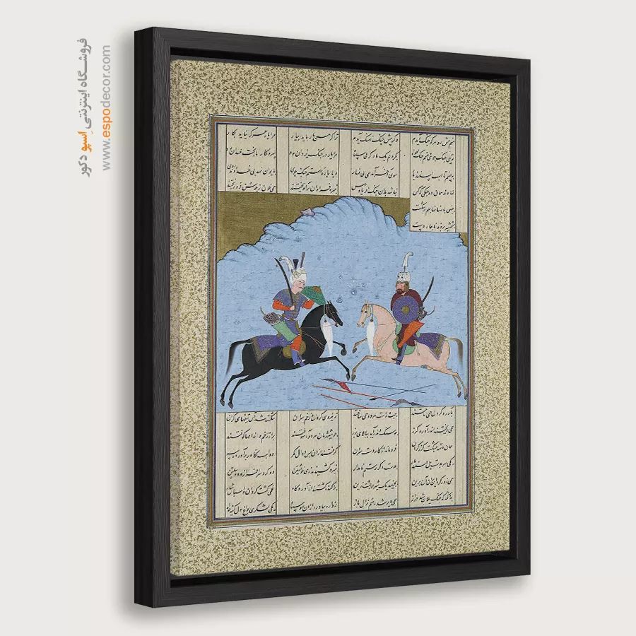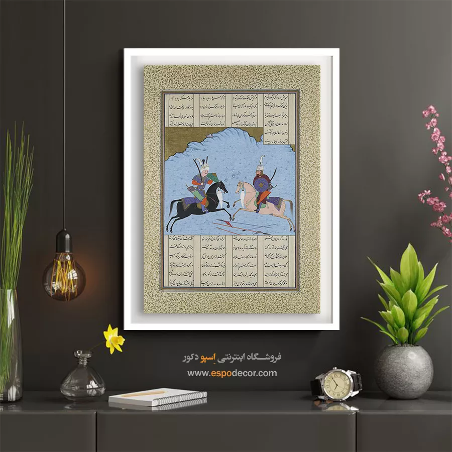 رستم و اسفندیار جنگ خود را آغاز می کنند – تابلو نقاشی ایرانی