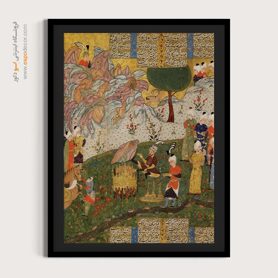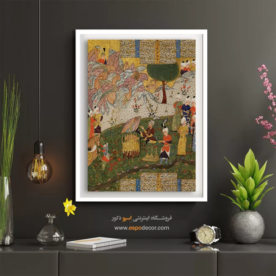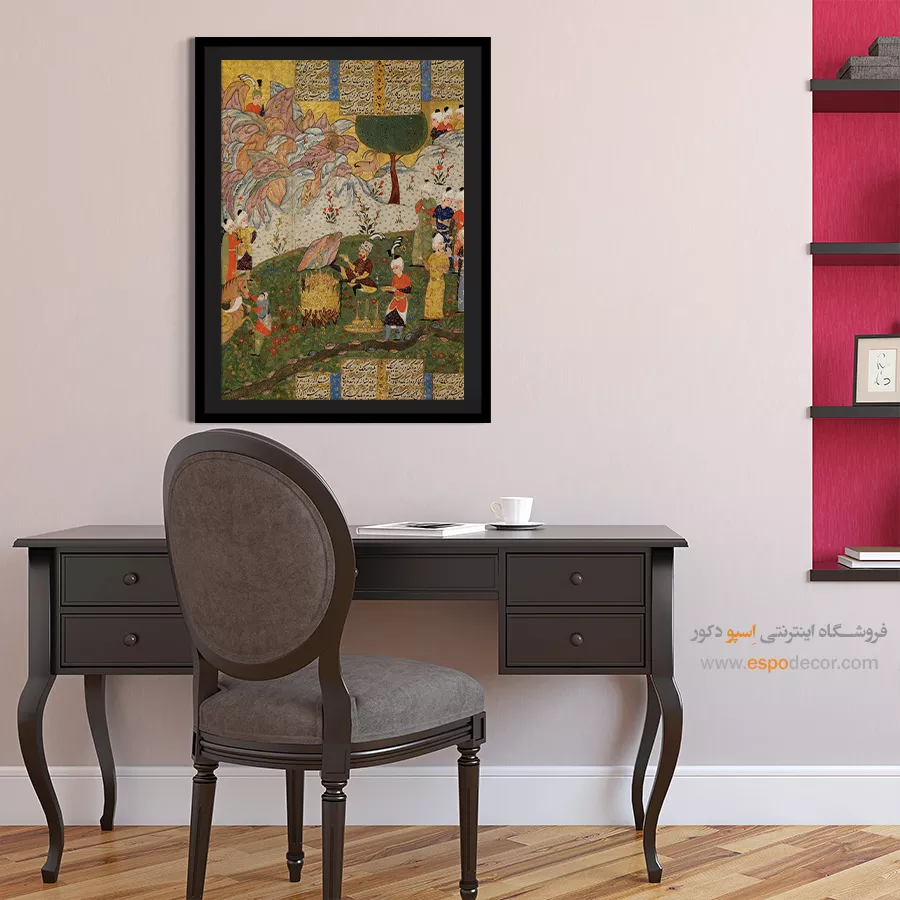در ظرافت خطوط و درخشش رنگها، روایت هزارساله هنر مینیاتور و نگارگری ایرانی زنده میشود. این تابلو نقاشی ایرانی، یادگاری فاخر از میراث فرهنگی ایران برای خانهای آراسته و روحنواز است.