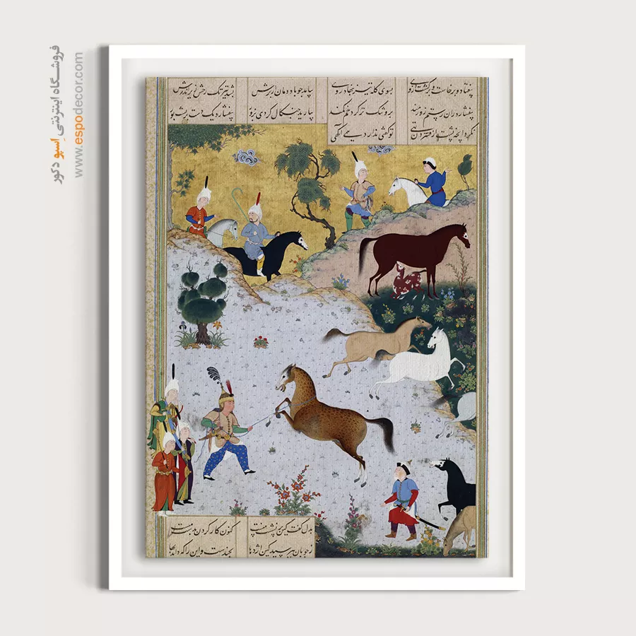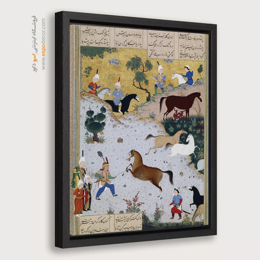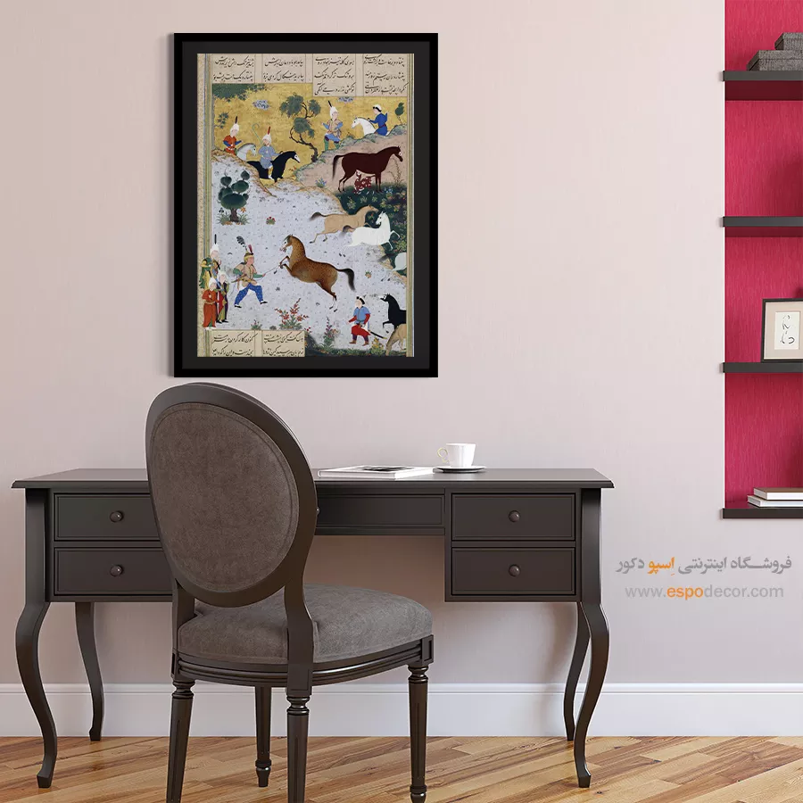در ظرافت خطوط و درخشش رنگ‌ها، روایت هزارساله هنر مینیاتور و نگارگری ایرانی زنده می‌شود. این تابلو نقاشی ایرانی، یادگاری فاخر از میراث فرهنگی ایران برای خانه‌ای آراسته و روح‌نواز است.