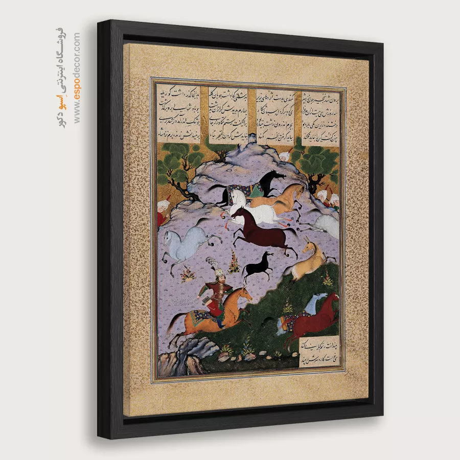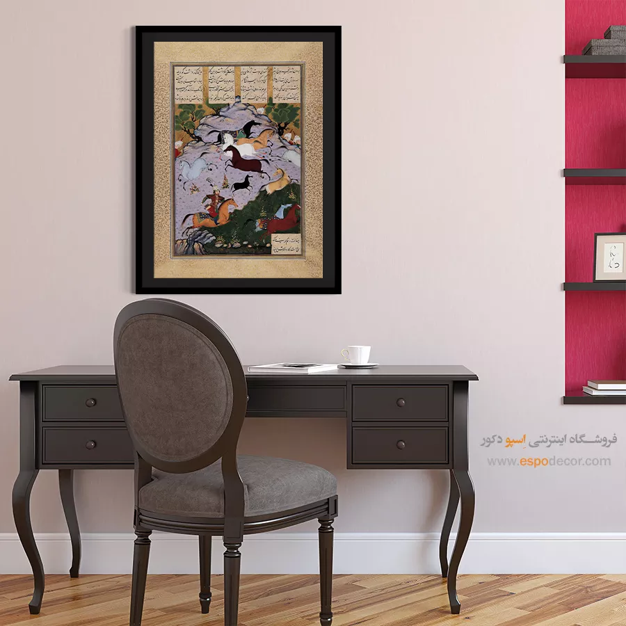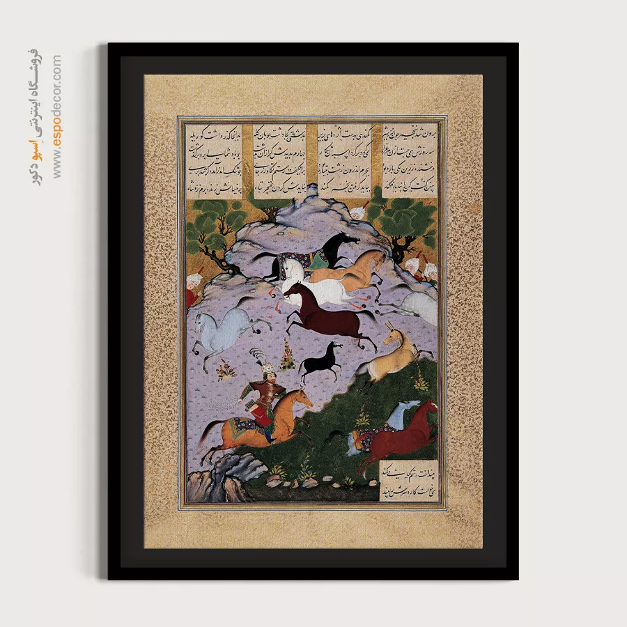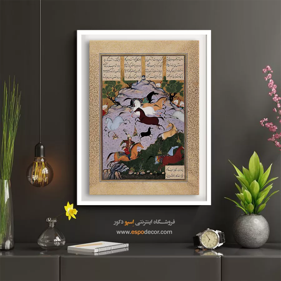 در ظرافت خطوط و درخشش رنگها، روایت هزارساله هنر مینیاتور و نگارگری ایرانی زنده میشود. این تابلو نقاشی ایرانی، یادگاری فاخر از میراث فرهنگی ایران برای خانهای آراسته و روحنواز است.