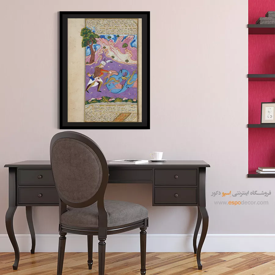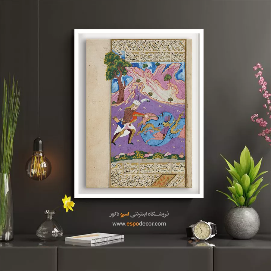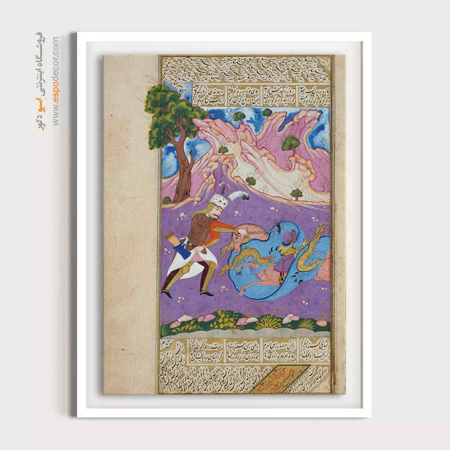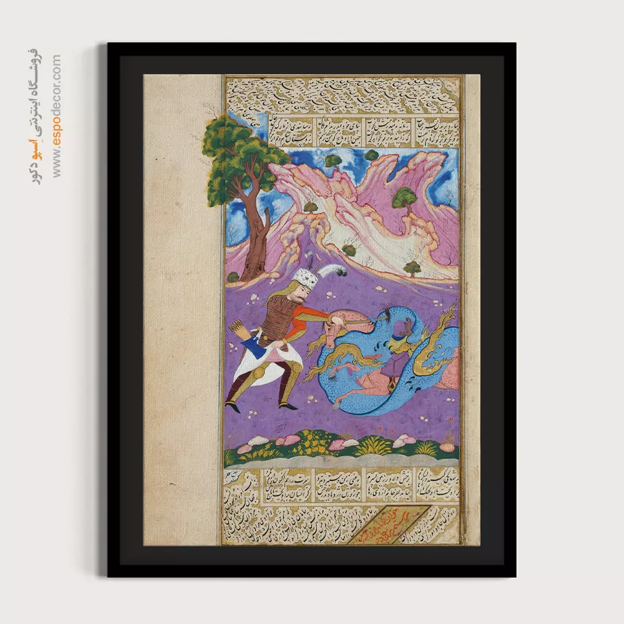 رستم در حال کشتن اژدها – تابلو نقاشی ایرانی