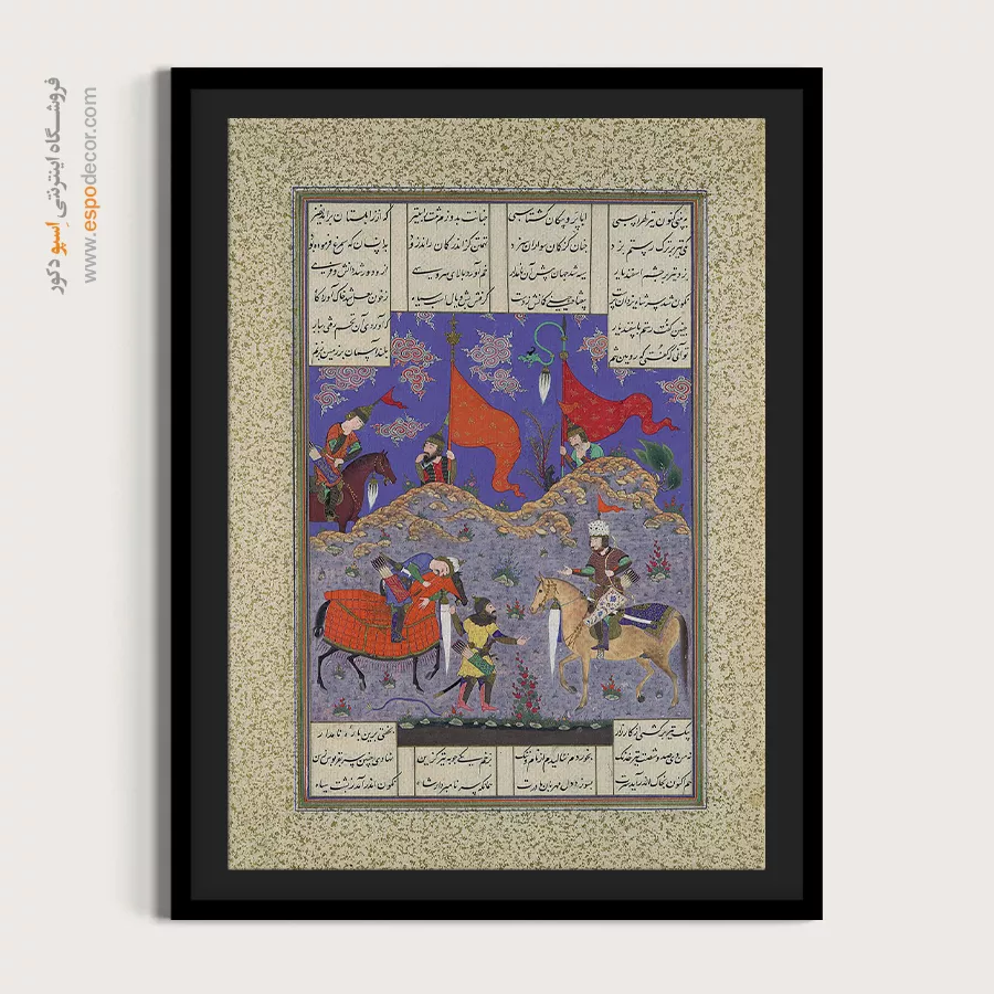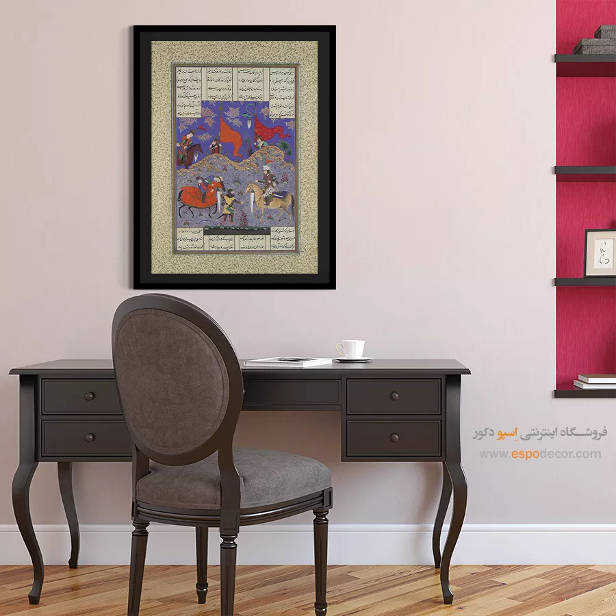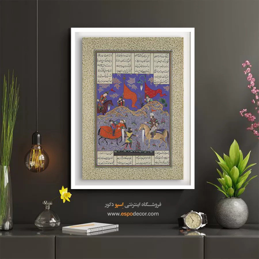 در ظرافت خطوط و درخشش رنگ‌ها، روایت هزارساله هنر مینیاتور و نگارگری ایرانی زنده می‌شود. این تابلو نقاشی ایرانی، یادگاری فاخر از میراث فرهنگی ایران برای خانه‌ای آراسته و روح‌نواز است.