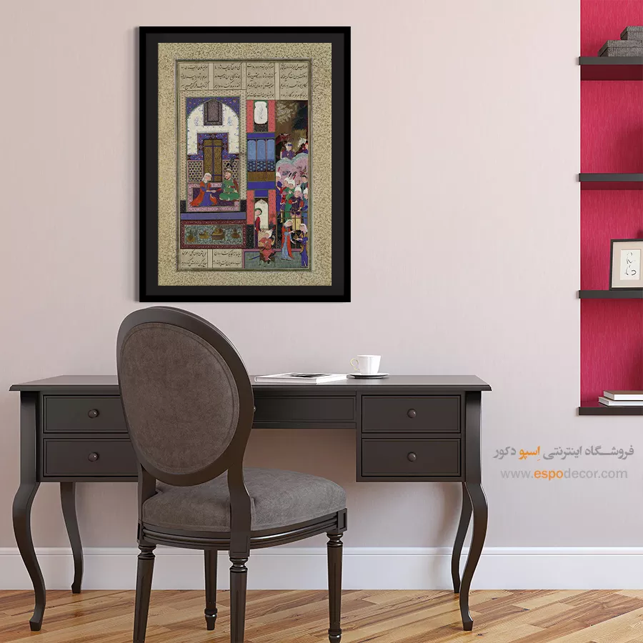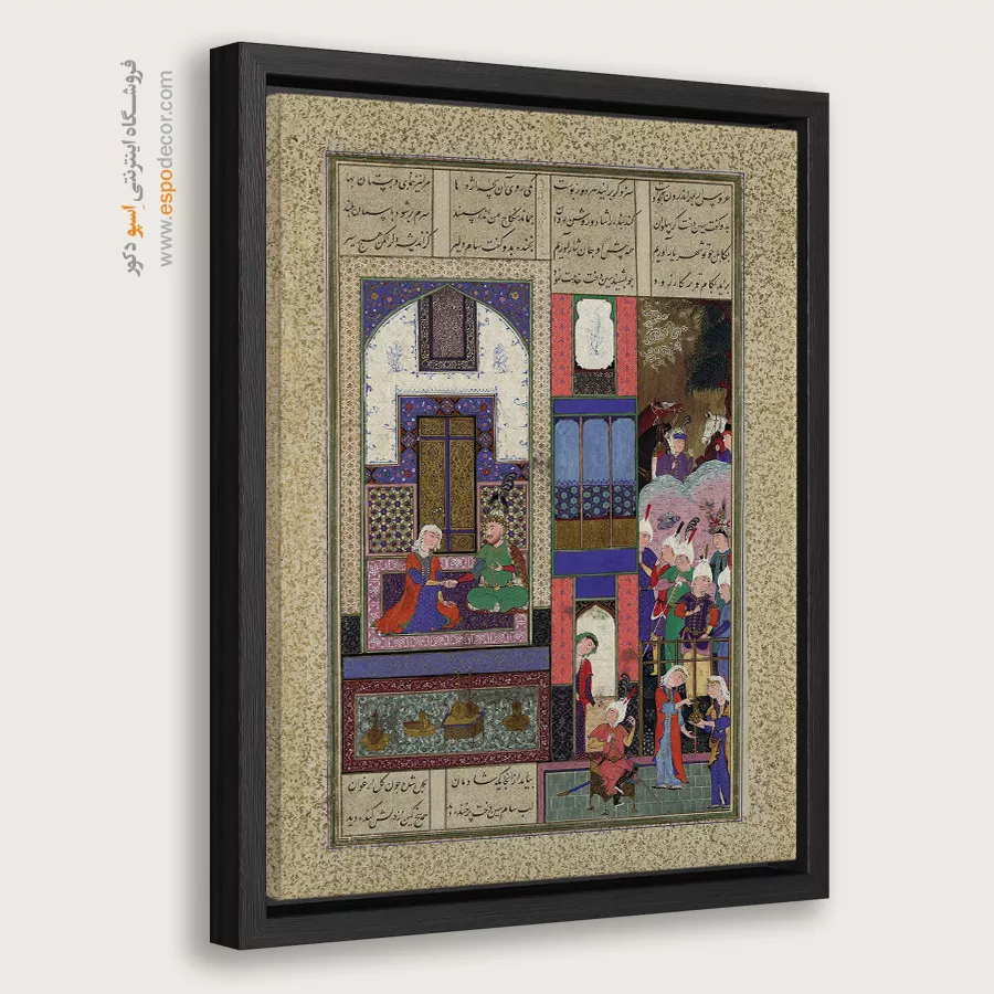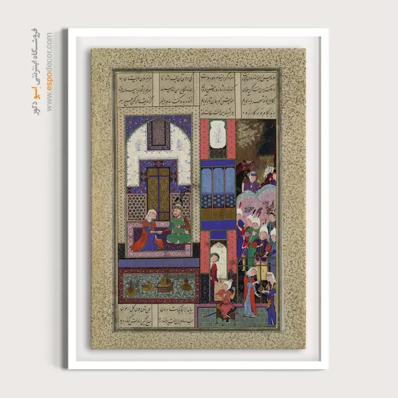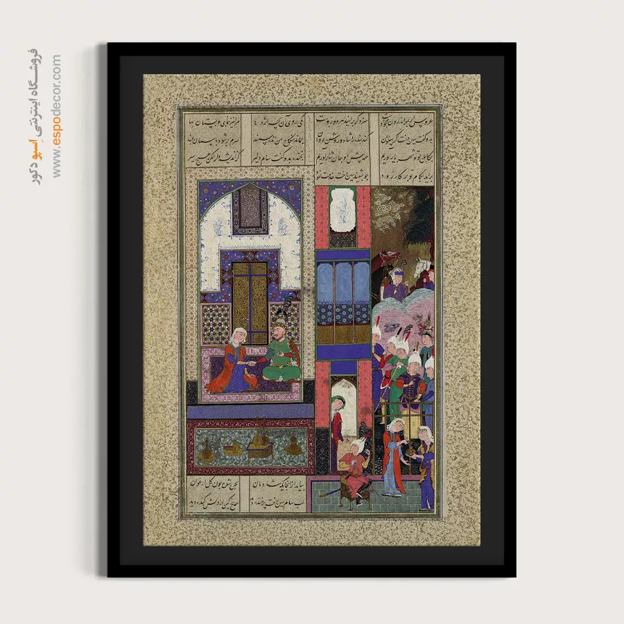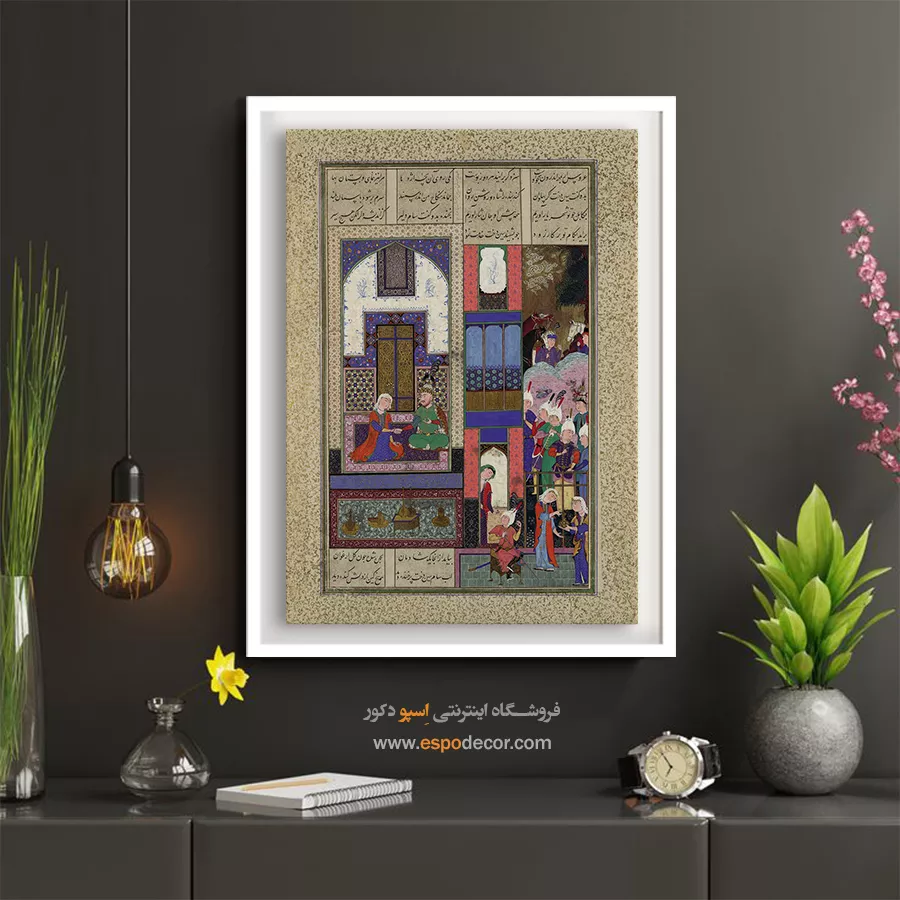 در ظرافت خطوط و درخشش رنگها، روایت هزارساله هنر مینیاتور و نگارگری ایرانی زنده میشود. این تابلو نقاشی ایرانی، یادگاری فاخر از میراث فرهنگی ایران برای خانهای آراسته و روحنواز است.
