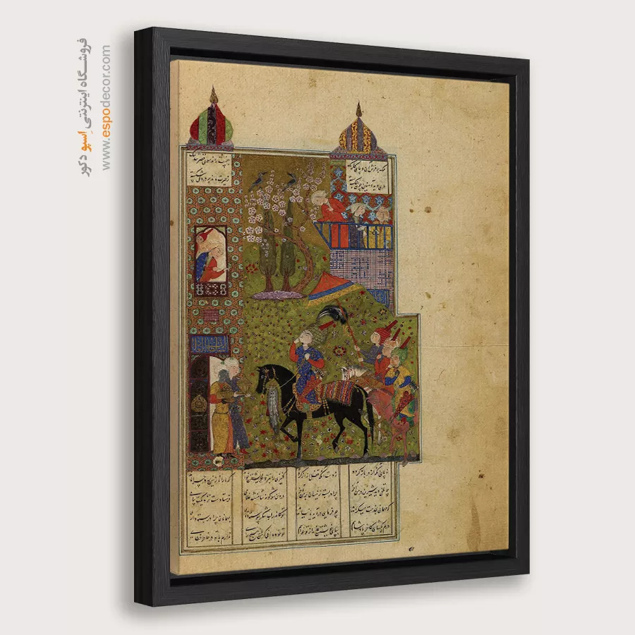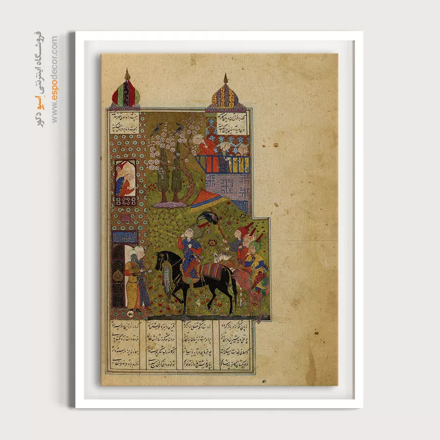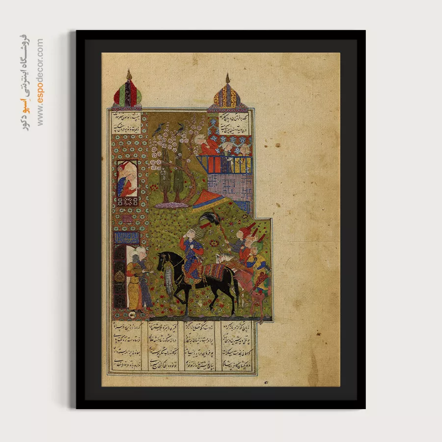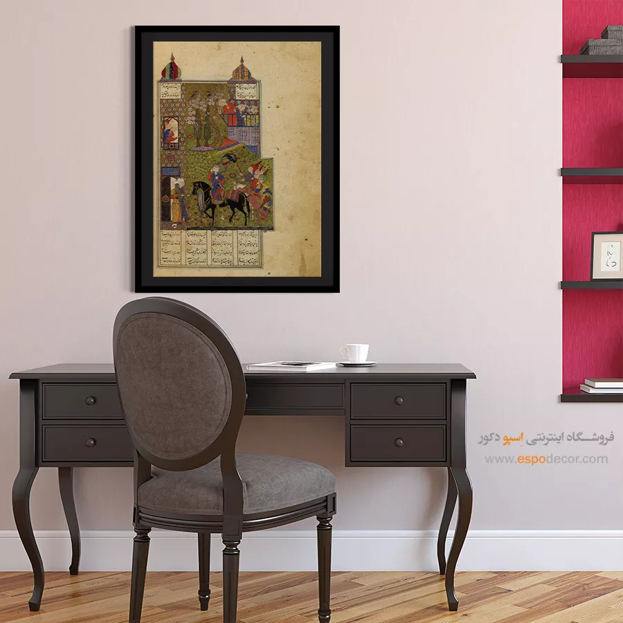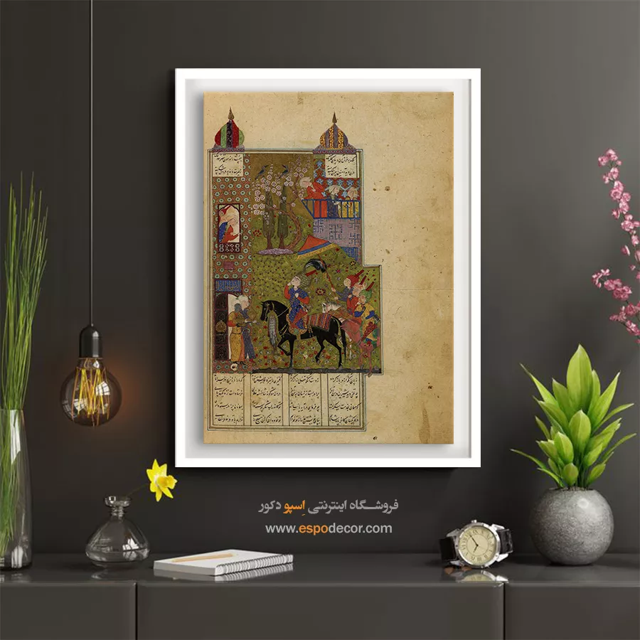 در ظرافت خطوط و درخشش رنگها، روایت هزارساله هنر مینیاتور و نگارگری ایرانی زنده میشود. این تابلو نقاشی ایرانی، یادگاری فاخر از میراث فرهنگی ایران برای خانهای آراسته و روحنواز است.