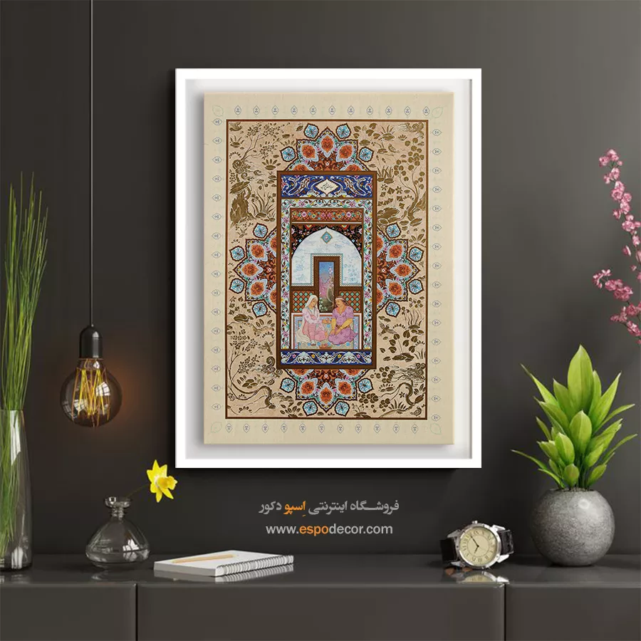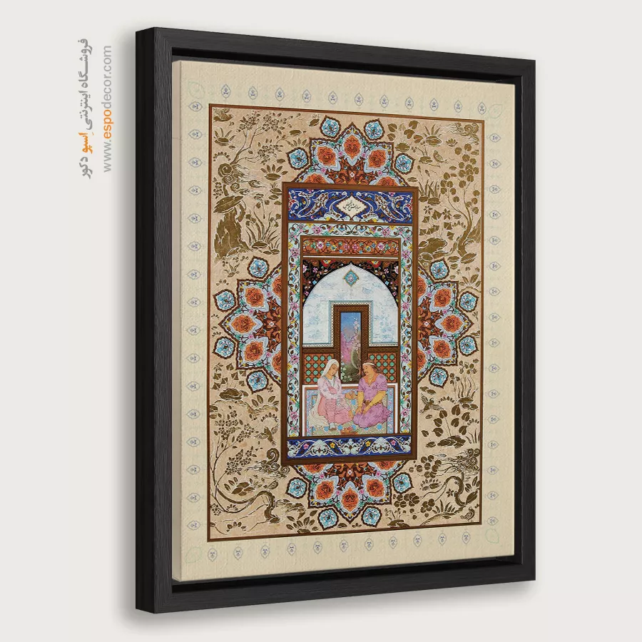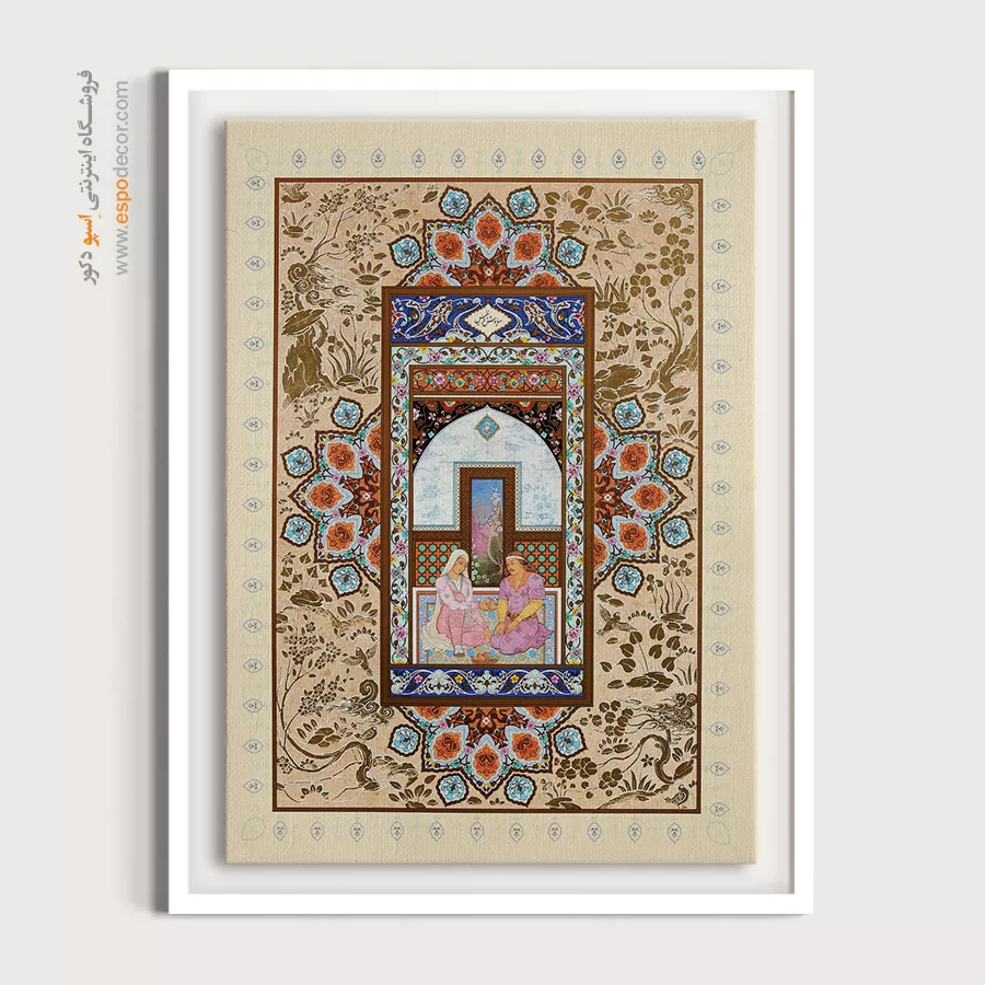 در ظرافت خطوط و درخشش رنگ‌ها، روایت هزارساله هنر مینیاتور و نگارگری ایرانی زنده می‌شود. این تابلو نقاشی ایرانی، یادگاری فاخر از میراث فرهنگی ایران برای خانه‌ای آراسته و روح‌نواز است.