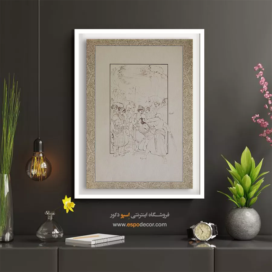 در دل هر نقش و رنگ، قصه‌ای کهن از سرزمین شعر و شکوه نهفته است. این تابلو نقاشی ایرانی برگرفته از اصالت نگارگری و ظرافت مینیاتورهای ماندگار، پلی میان تاریخ و دنیای امروز می‌سازد؛ گویی پنجره‌ای است به جهانی که در آن زیبایی و معنویت هم‌نشین‌اند. هر تابلو، برگ زرینی از نسخ خطی و هنر سنتی ایرانی است؛ سرشار از لطافت خطوط و رنگ‌هایی که به آرامی با چشم و دل سخن می‌گویند. با تماشای آن، می‌توان به عمق فرهنگ ایرانی سفر کرد و لمس کرد که چگونه گذر قرن‌ها نتوانسته فروغ این هنر جاودان را خاموش سازد. این تابلوها بر روی بوم‌های باکیفیت چاپ می‌شوند؛ بافت لطیف بوم و رنگ‌های زنده، جلوه‌ای طبیعی و هنری به اثر می‌بخشند. رنگ‌ها به گونه‌ای انتخاب شده‌اند که درخشان، ماندگار و مقاوم در برابر نور باشند؛ تا سالیان سال، زیبایی اصیل ایرانی در فضای خانه یا محل کارتان بدرخشد. فریم‌های محکم، ساختاری استوار به تابلو می‌بخشند و با طراحی ظریف خود، بر شکوه اثر می‌افزایند. سبک بودن تابلو و امکان نصب آسان، آن را برای هر نوع دکوراسیون مدرن یا کلاسیک مناسب می‌سازد. از اتاق نشیمن تا دفتر کار، این آثار همچون نگینی فاخر بر دیوار خواهند درخشید. هر اثر، فرصتی برای لمس دوباره‌ی هنر نگارگری و مینیاتور ایرانی است؛ هنری که در جزئی‌ترین خطوط، روح شاعرانه ایرانیان را بازمی‌تاباند. این تابلوها نه تنها تزیینی، بلکه یادآور هویت فرهنگی و زیبایی بی‌زمان ایران‌زمین‌اند. اگر به دنبال هدیه‌ای ماندگار یا اثری منحصر به فرد برای فضای زندگی‌تان هستید، این تابلو بوم نگارگری ایرانی انتخابی بی‌همتاست. ترکیب اصالت تاریخی با کیفیت مدرن چاپ، ارزش هنری و زیبایی را در یک قاب جاودانه به شما تقدیم می‌کند.