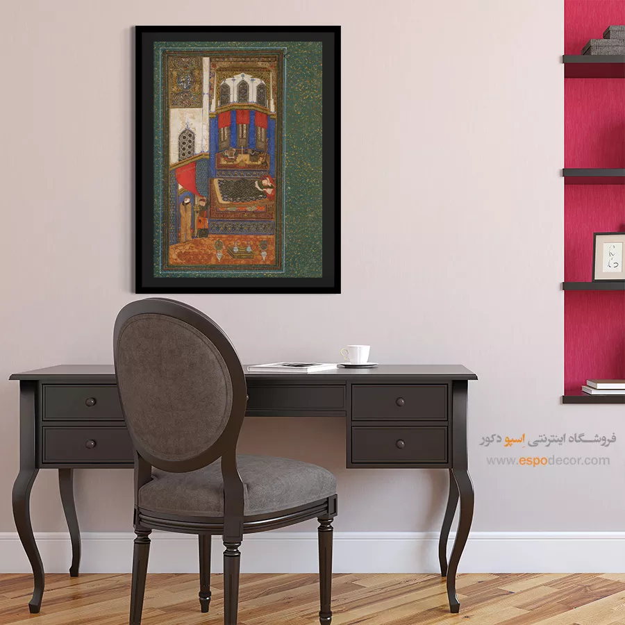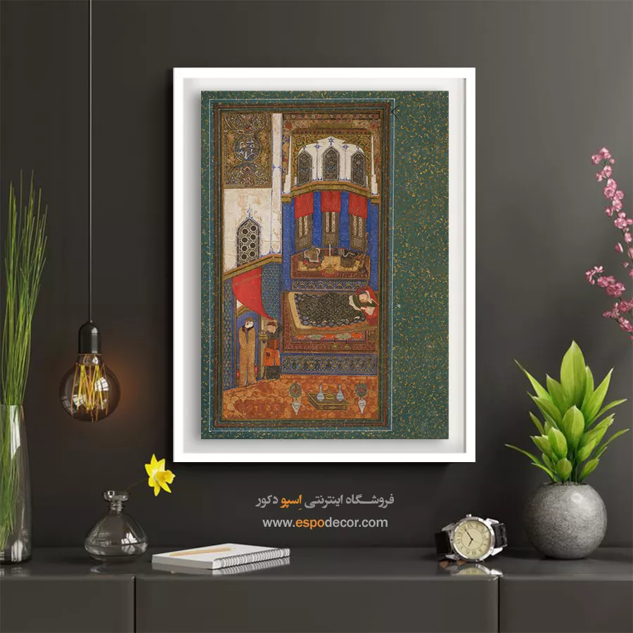 در ظرافت خطوط و درخشش رنگها، روایت هزارساله هنر مینیاتور و نگارگری ایرانی زنده میشود. این تابلو نقاشی ایرانی، یادگاری فاخر از میراث فرهنگی ایران برای خانهای آراسته و روحنواز است.
