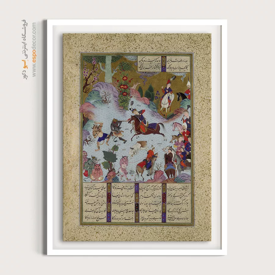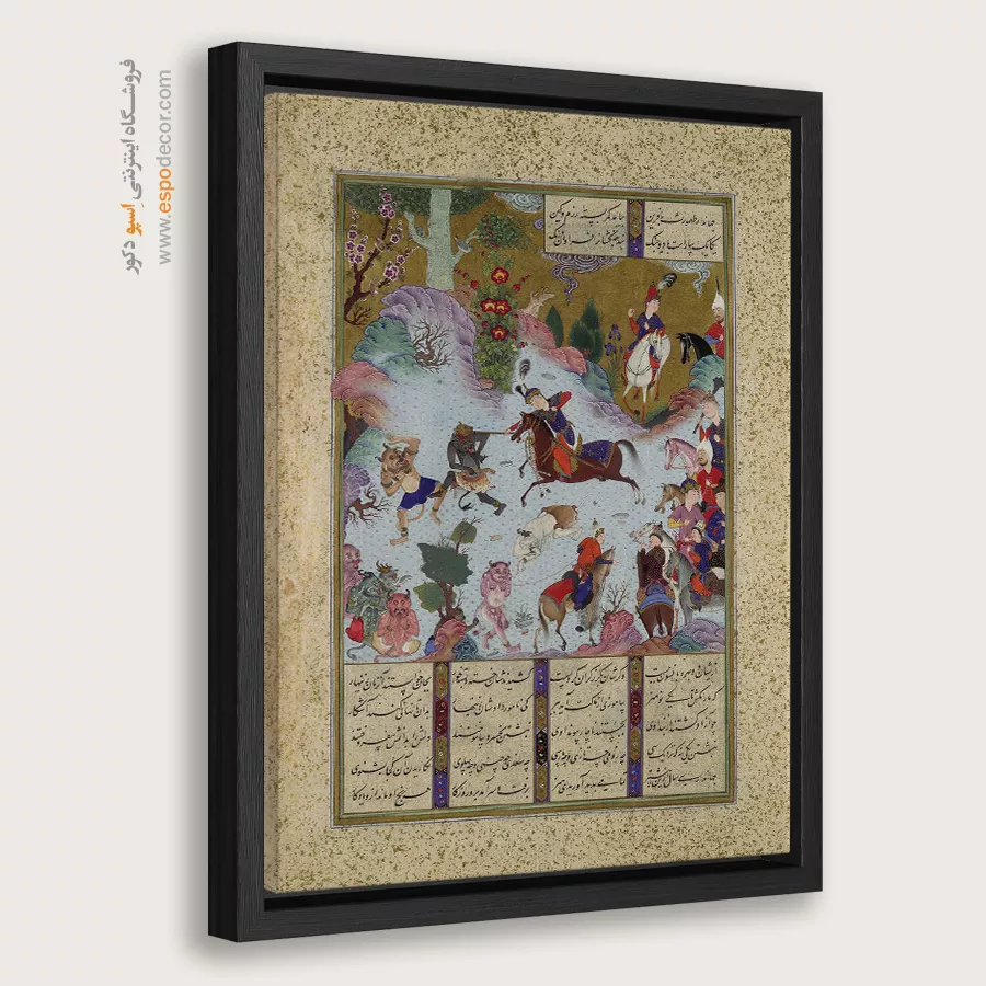 طهمورث دیوها را شکست می دهد – تابلو نقاشی ایرانی