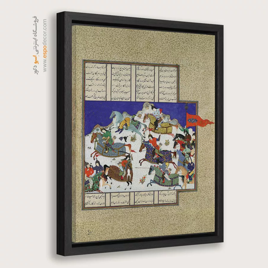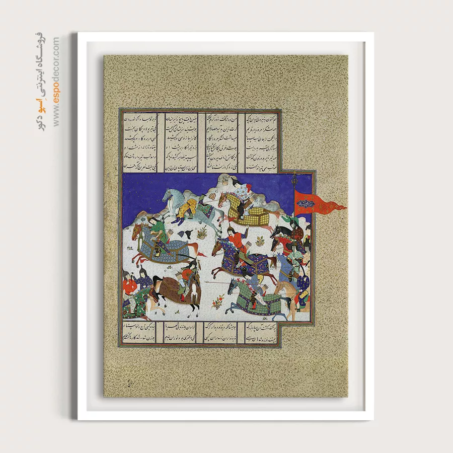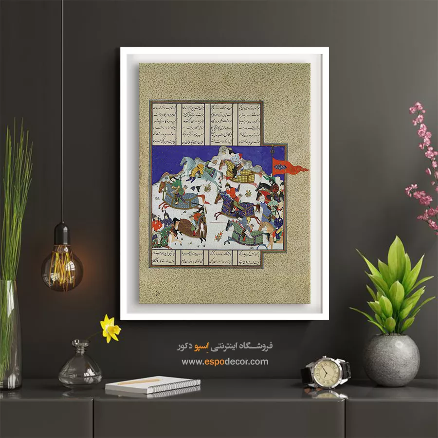 در دل هر نقش و رنگ، قصه‌ای کهن از سرزمین شعر و شکوه نهفته است. این تابلو نقاشی ایرانی برگرفته از اصالت نگارگری و ظرافت مینیاتورهای ماندگار، پلی میان تاریخ و دنیای امروز می‌سازد؛ گویی پنجره‌ای است به جهانی که در آن زیبایی و معنویت هم‌نشین‌اند.هر تابلو، برگ زرینی از نسخ خطی و هنر سنتی ایرانی است؛ سرشار از لطافت خطوط و رنگ‌هایی که به آرامی با چشم و دل سخن می‌گویند. با تماشای آن، می‌توان به عمق فرهنگ ایرانی سفر کرد و لمس کرد که چگونه گذر قرن‌ها نتوانسته فروغ این هنر جاودان را خاموش سازد.این تابلوها بر روی بوم‌های باکیفیت چاپ می‌شوند؛ بافت لطیف بوم و رنگ‌های زنده، جلوه‌ای طبیعی و هنری به اثر می‌بخشند. رنگ‌ها به گونه‌ای انتخاب شده‌اند که درخشان، ماندگار و مقاوم در برابر نور باشند؛ تا سالیان سال، زیبایی اصیل ایرانی در فضای خانه یا محل کارتان بدرخشد.فریم‌های محکم، ساختاری استوار به تابلو می‌بخشند و با طراحی ظریف خود، بر شکوه اثر می‌افزایند. سبک بودن تابلو و امکان نصب آسان، آن را برای هر نوع دکوراسیون مدرن یا کلاسیک مناسب می‌سازد. از اتاق نشیمن تا دفتر کار، این آثار همچون نگینی فاخر بر دیوار خواهند درخشید.هر اثر، فرصتی برای لمس دوباره‌ی هنر نگارگری و مینیاتور ایرانی است؛ هنری که در جزئی‌ترین خطوط، روح شاعرانه ایرانیان را بازمی‌تاباند. این تابلوها نه تنها تزیینی، بلکه یادآور هویت فرهنگی و زیبایی بی‌زمان ایران‌زمین‌اند.اگر به دنبال هدیه‌ای ماندگار یا اثری منحصر به فرد برای فضای زندگی‌تان هستید، این تابلو بوم نگارگری ایرانی انتخابی بی‌همتاست. ترکیب اصالت تاریخی با کیفیت مدرن چاپ، ارزش هنری و زیبایی را در یک قاب جاودانه به شما تقدیم می‌کند.
