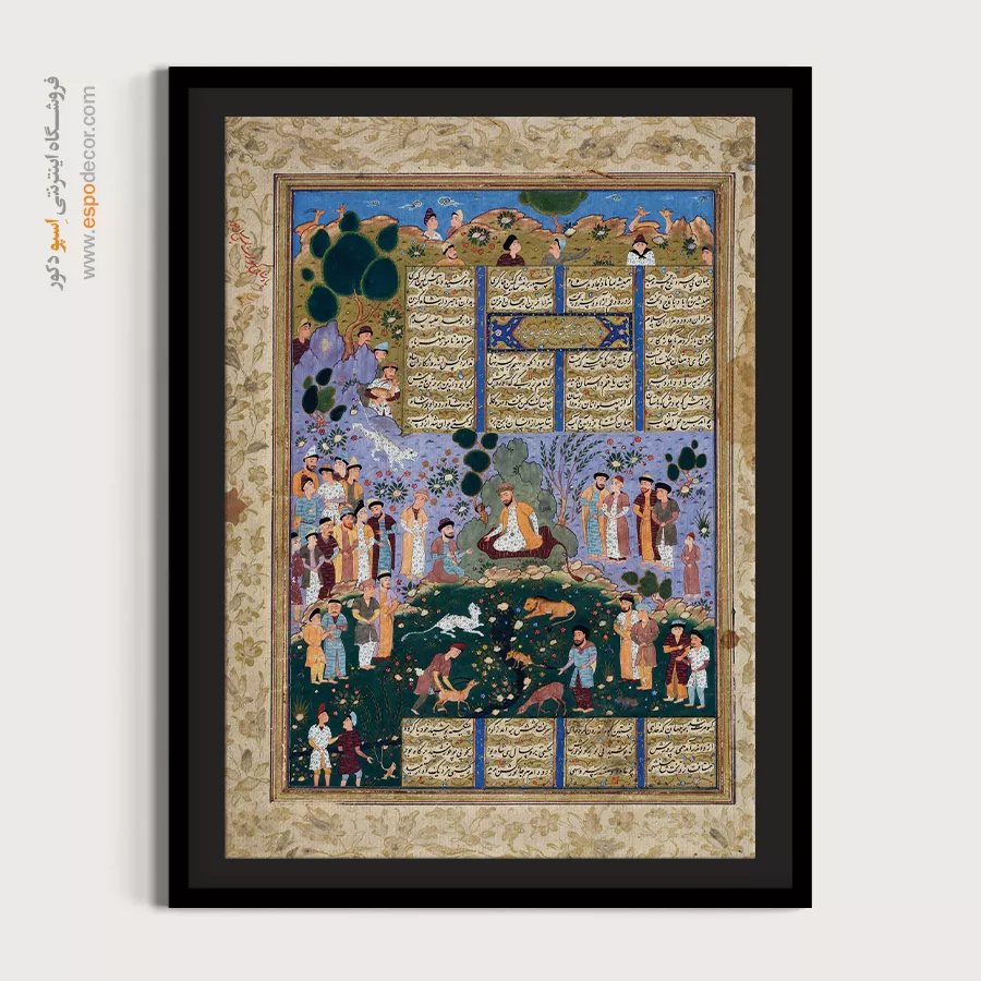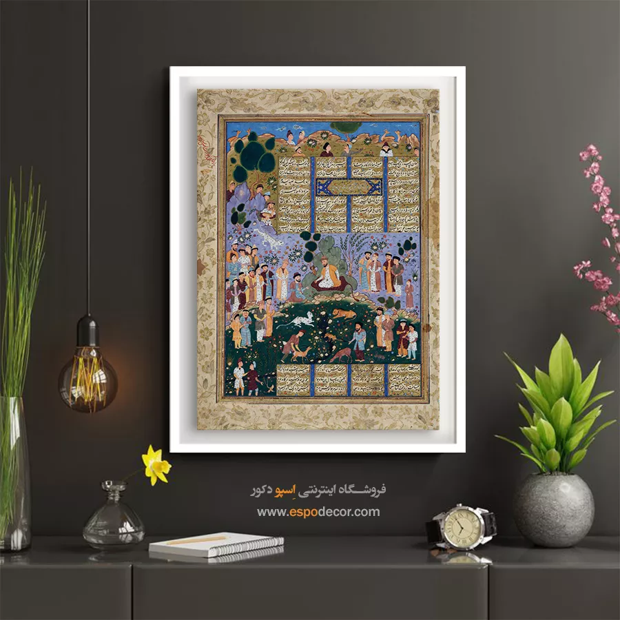 در ظرافت خطوط و درخشش رنگ‌ها، روایت هزارساله هنر مینیاتور و نگارگری ایرانی زنده می‌شود. این تابلو نقاشی ایرانی، یادگاری فاخر از میراث فرهنگی ایران برای خانه‌ای آراسته و روح‌نواز است.