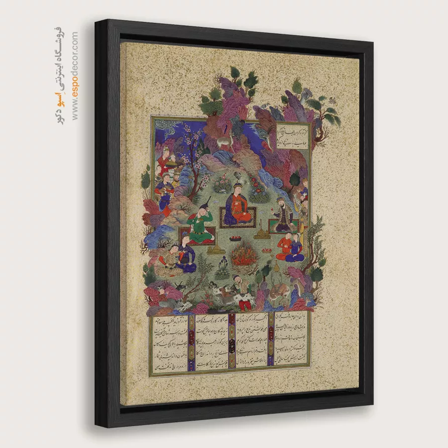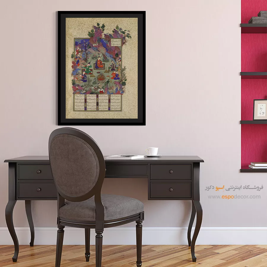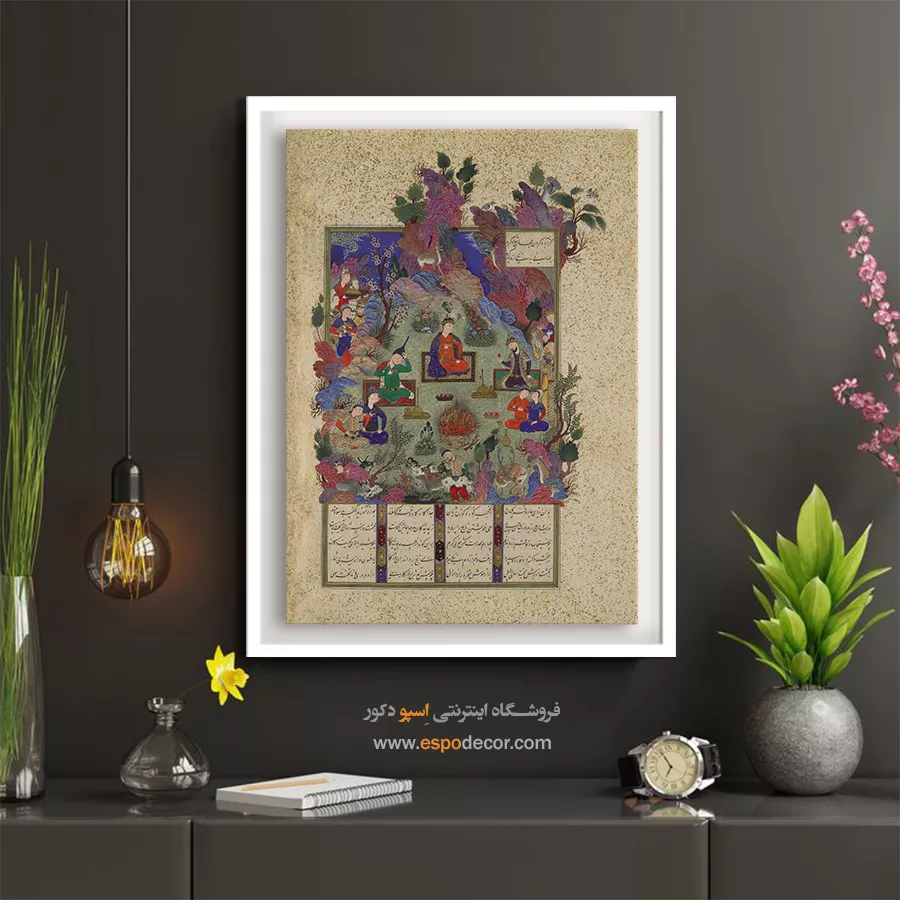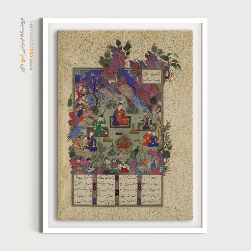 در ظرافت خطوط و درخشش رنگها، روایت هزارساله هنر مینیاتور و نگارگری ایرانی زنده میشود. این تابلو نقاشی ایرانی، یادگاری فاخر از میراث فرهنگی ایران برای خانهای آراسته و روحنواز است.