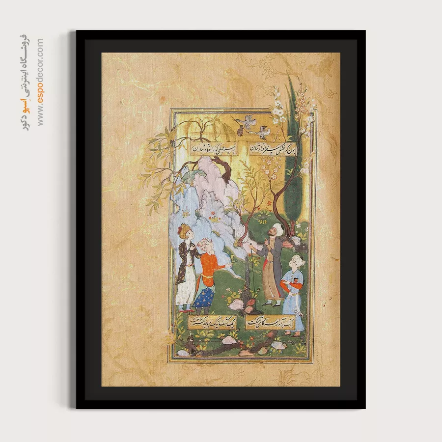 در ظرافت خطوط و درخشش رنگها، روایت هزارساله هنر مینیاتور و نگارگری ایرانی زنده میشود. این تابلو نقاشی ایرانی، یادگاری فاخر از میراث فرهنگی ایران برای خانهای آراسته و روحنواز است.