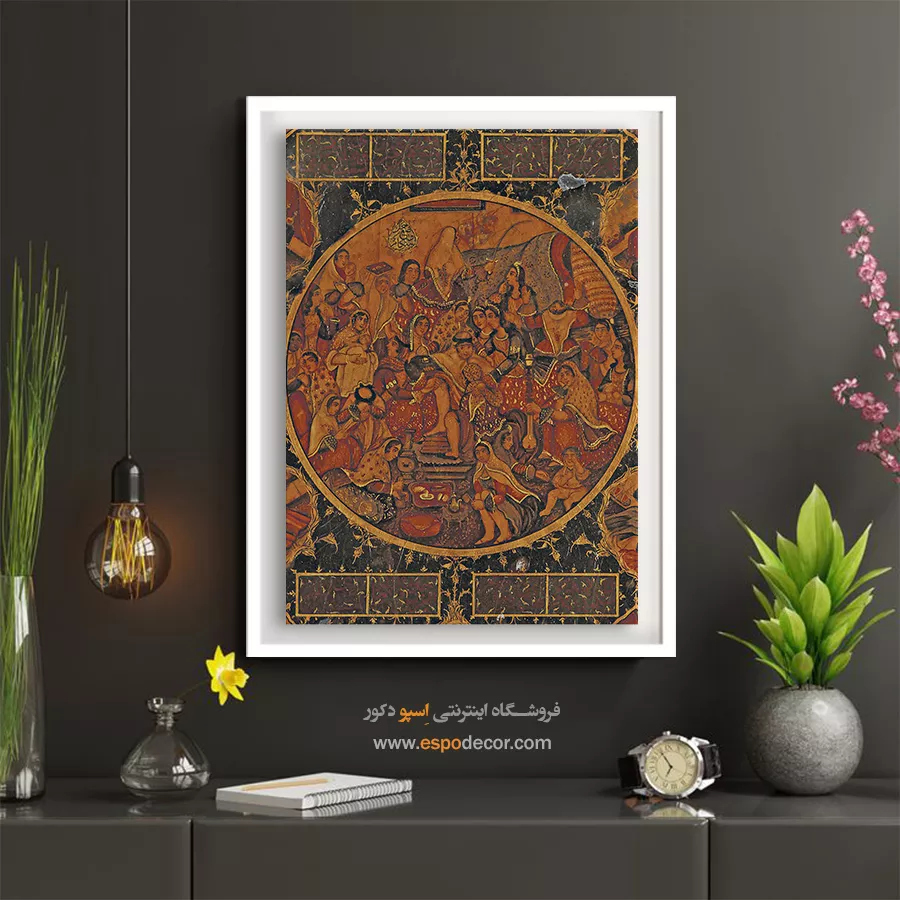 در ظرافت خطوط و درخشش رنگ‌ها، روایت هزارساله هنر مینیاتور و نگارگری ایرانی زنده می‌شود. این تابلو نقاشی ایرانی، یادگاری فاخر از میراث فرهنگی ایران برای خانه‌ای آراسته و روح‌نواز است.