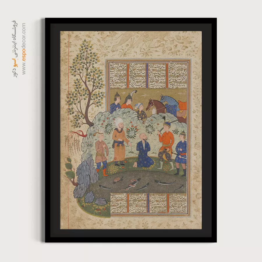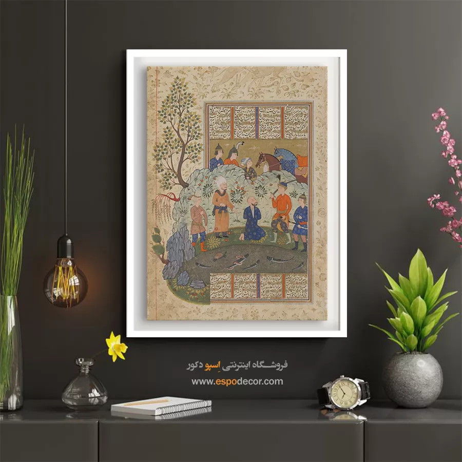 در ظرافت خطوط و درخشش رنگها، روایت هزارساله هنر مینیاتور و نگارگری ایرانی زنده میشود. این تابلو نقاشی ایرانی، یادگاری فاخر از میراث فرهنگی ایران برای خانهای آراسته و روحنواز است.