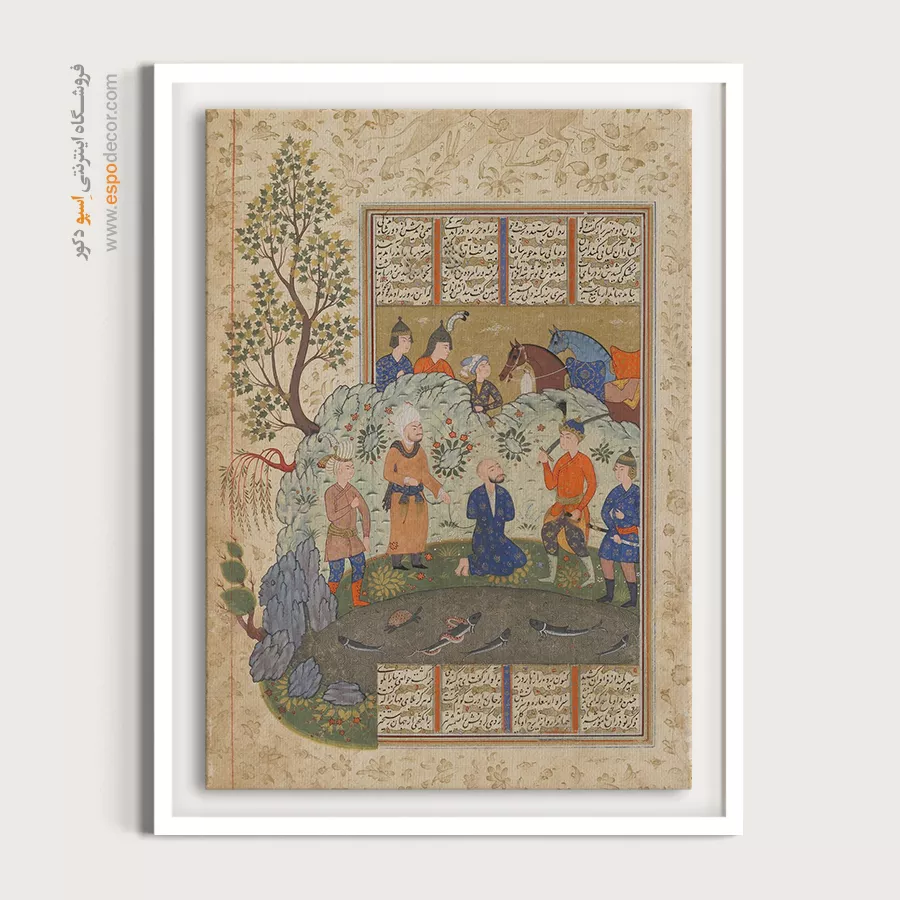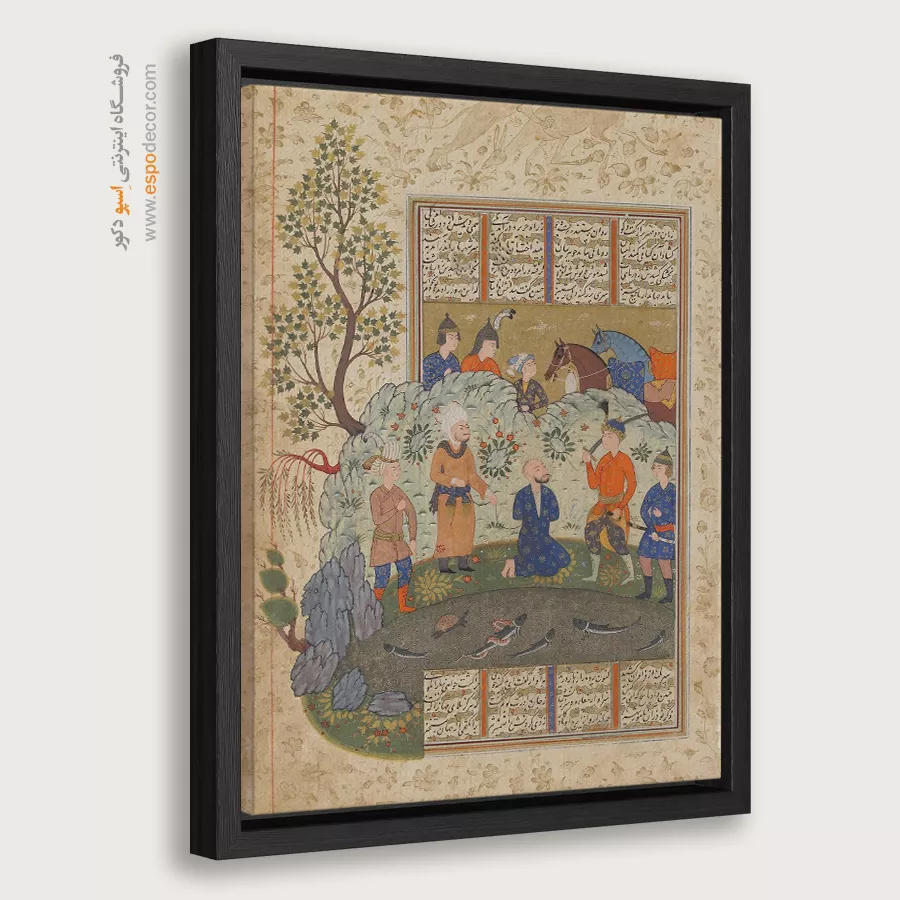 کیخسرو آماده میشود تا افراسیاب را سر ببرد – تابلو نقاشی ایرانی