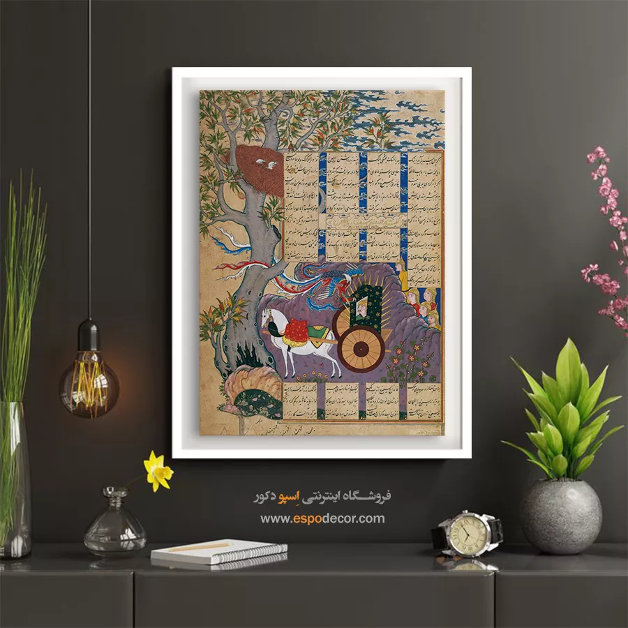 در ظرافت خطوط و درخشش رنگها، روایت هزارساله هنر مینیاتور و نگارگری ایرانی زنده میشود. این تابلو نقاشی ایرانی، یادگاری فاخر از میراث فرهنگی ایران برای خانهای آراسته و روحنواز است.