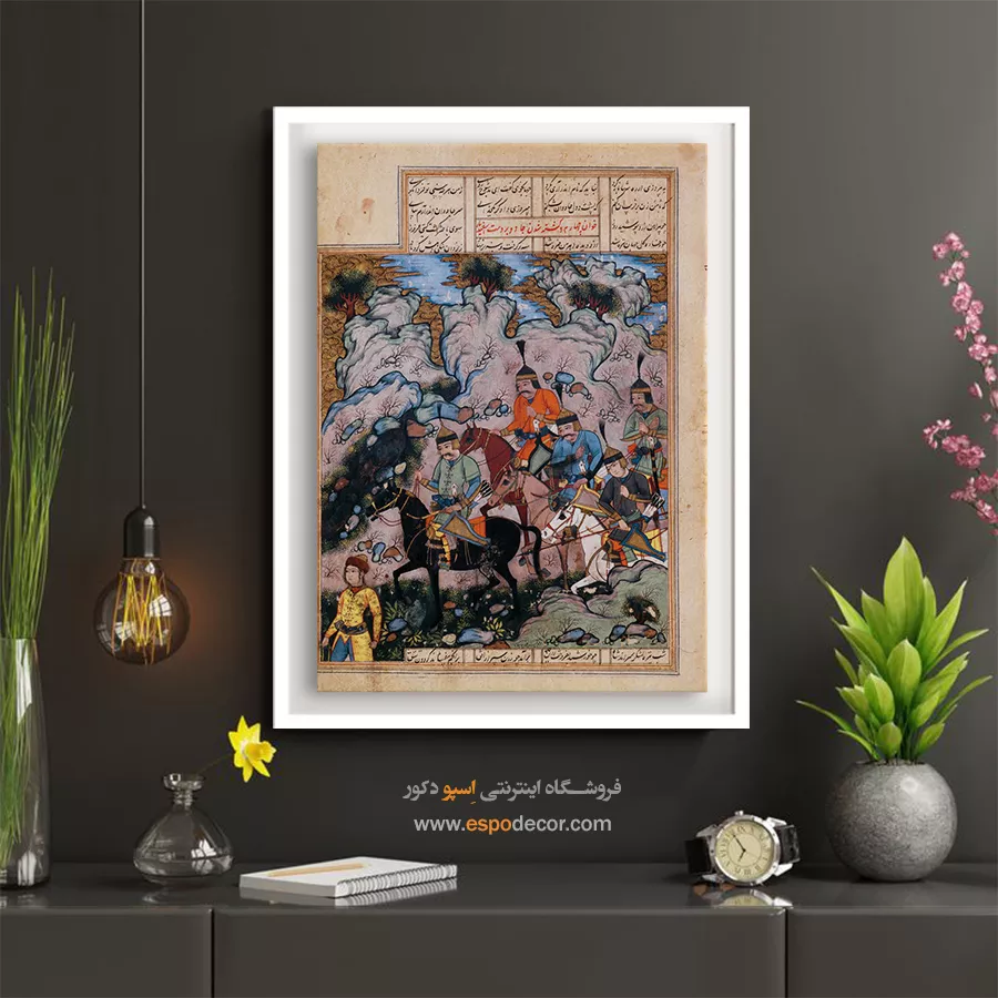اسفندیار و سپاهش در غروب آفتاب – تابلو نقاشی ایرانی