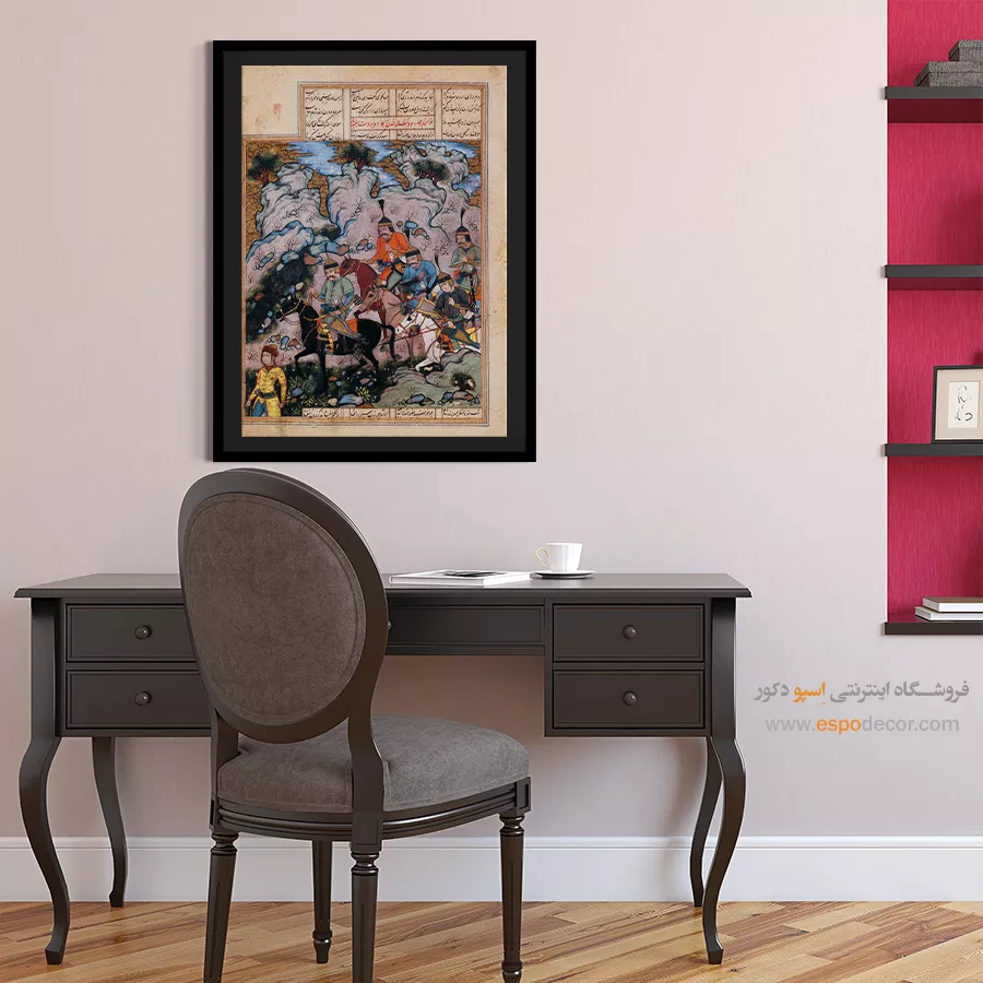 در ظرافت خطوط و درخشش رنگ‌ها، روایت هزارساله هنر مینیاتور و نگارگری ایرانی زنده می‌شود. این تابلو نقاشی ایرانی، یادگاری فاخر از میراث فرهنگی ایران برای خانه‌ای آراسته و روح‌نواز است.