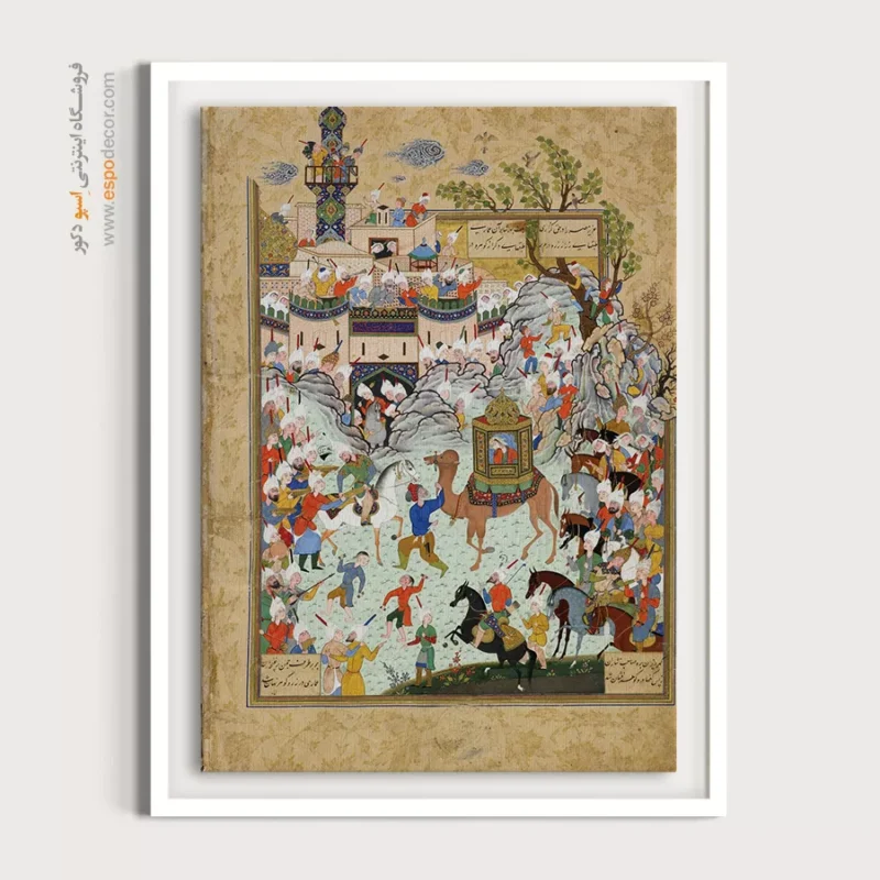 در ظرافت خطوط و درخشش رنگها، روایت هزارساله هنر مینیاتور و نگارگری ایرانی زنده میشود. این تابلو نقاشی ایرانی، یادگاری فاخر از میراث فرهنگی ایران برای خانهای آراسته و روحنواز است.
