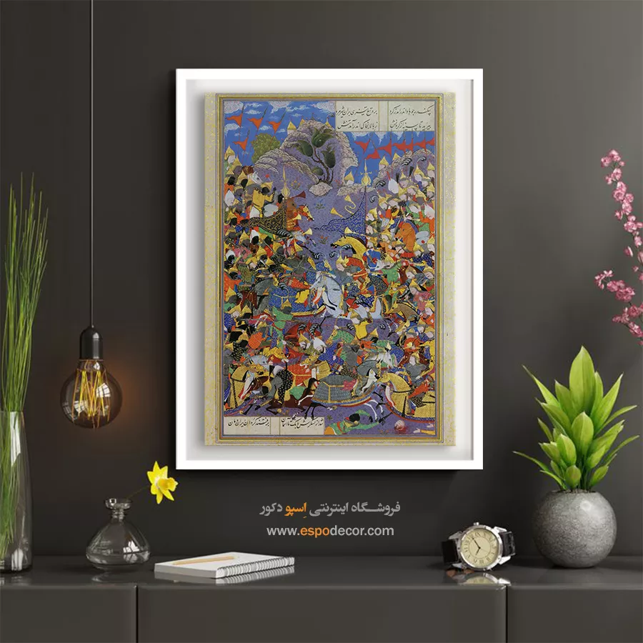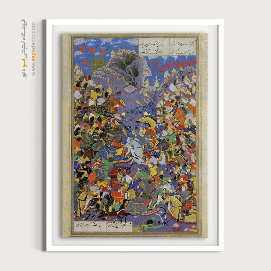 در دل هر نقش و رنگ، قصه‌ای کهن از سرزمین شعر و شکوه نهفته است. این تابلو نقاشی ایرانی برگرفته از اصالت نگارگری و ظرافت مینیاتورهای ماندگار، پلی میان تاریخ و دنیای امروز می‌سازد؛ گویی پنجره‌ای است به جهانی که در آن زیبایی و معنویت هم‌نشین‌اند. هر تابلو، برگ زرینی از نسخ خطی و هنر سنتی ایرانی است؛ سرشار از لطافت خطوط و رنگ‌هایی که به آرامی با چشم و دل سخن می‌گویند. با تماشای آن، می‌توان به عمق فرهنگ ایرانی سفر کرد و لمس کرد که چگونه گذر قرن‌ها نتوانسته فروغ این هنر جاودان را خاموش سازد. این تابلوها بر روی بوم‌های باکیفیت چاپ می‌شوند؛ بافت لطیف بوم و رنگ‌های زنده، جلوه‌ای طبیعی و هنری به اثر می‌بخشند. رنگ‌ها به گونه‌ای انتخاب شده‌اند که درخشان، ماندگار و مقاوم در برابر نور باشند؛ تا سالیان سال، زیبایی اصیل ایرانی در فضای خانه یا محل کارتان بدرخشد. فریم‌های محکم، ساختاری استوار به تابلو می‌بخشند و با طراحی ظریف خود، بر شکوه اثر می‌افزایند. سبک بودن تابلو و امکان نصب آسان، آن را برای هر نوع دکوراسیون مدرن یا کلاسیک مناسب می‌سازد. از اتاق نشیمن تا دفتر کار، این آثار همچون نگینی فاخر بر دیوار خواهند درخشید. هر اثر، فرصتی برای لمس دوباره‌ی هنر نگارگری و مینیاتور ایرانی است؛ هنری که در جزئی‌ترین خطوط، روح شاعرانه ایرانیان را بازمی‌تاباند. این تابلوها نه تنها تزیینی، بلکه یادآور هویت فرهنگی و زیبایی بی‌زمان ایران‌زمین‌اند. اگر به دنبال هدیه‌ای ماندگار یا اثری منحصر به فرد برای فضای زندگی‌تان هستید، این تابلو بوم نگارگری ایرانی انتخابی بی‌همتاست. ترکیب اصالت تاریخی با کیفیت مدرن چاپ، ارزش هنری و زیبایی را در یک قاب جاودانه به شما تقدیم می‌کند.