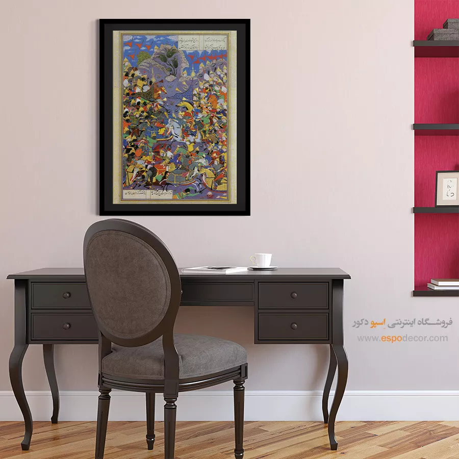 در ظرافت خطوط و درخشش رنگ‌ها، روایت هزارساله هنر مینیاتور و نگارگری ایرانی زنده می‌شود. این تابلو نقاشی ایرانی، یادگاری فاخر از میراث فرهنگی ایران برای خانه‌ای آراسته و روح‌نواز است.