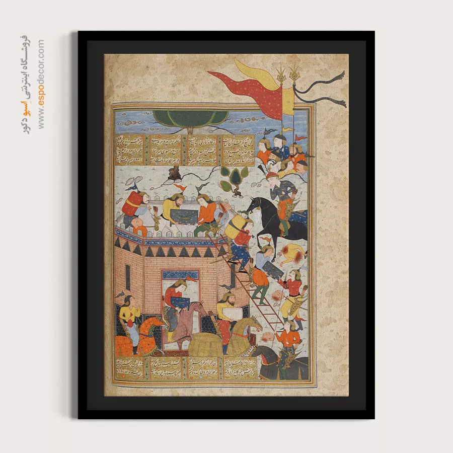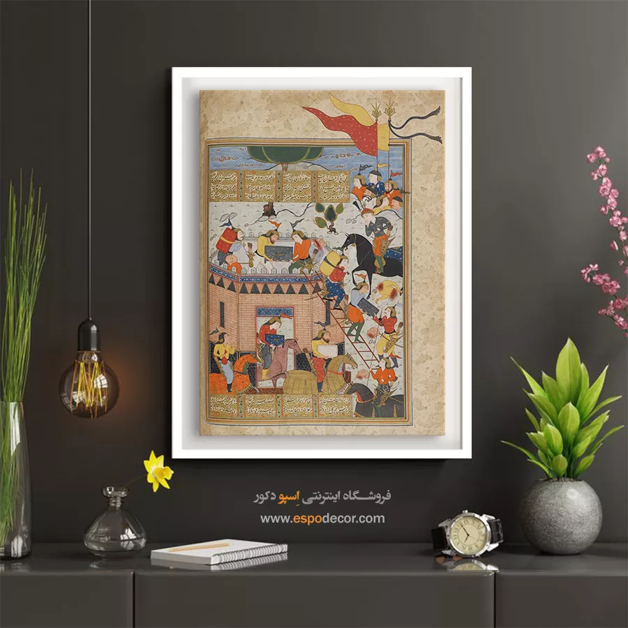 در ظرافت خطوط و درخشش رنگها، روایت هزارساله هنر مینیاتور و نگارگری ایرانی زنده میشود. این تابلو نقاشی ایرانی، یادگاری فاخر از میراث فرهنگی ایران برای خانهای آراسته و روحنواز است.