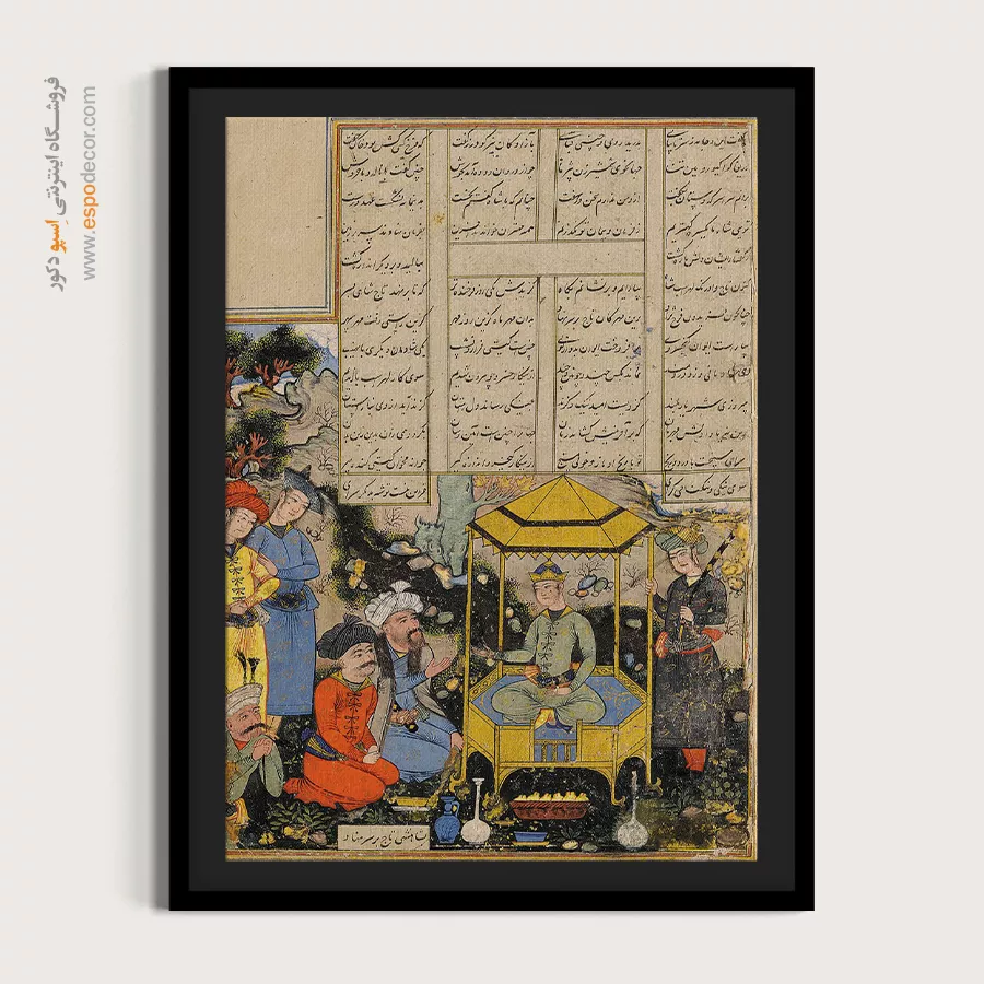 در ظرافت خطوط و درخشش رنگها، روایت هزارساله هنر مینیاتور و نگارگری ایرانی زنده میشود. این تابلو نقاشی ایرانی، یادگاری فاخر از میراث فرهنگی ایران برای خانهای آراسته و روحنواز است.