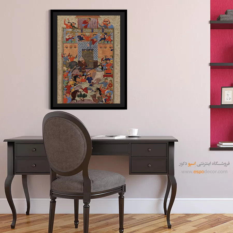 در ظرافت خطوط و درخشش رنگ‌ها، روایت هزارساله هنر مینیاتور و نگارگری ایرانی زنده می‌شود. این تابلو نقاشی ایرانی، یادگاری فاخر از میراث فرهنگی ایران برای خانه‌ای آراسته و روح‌نواز است.