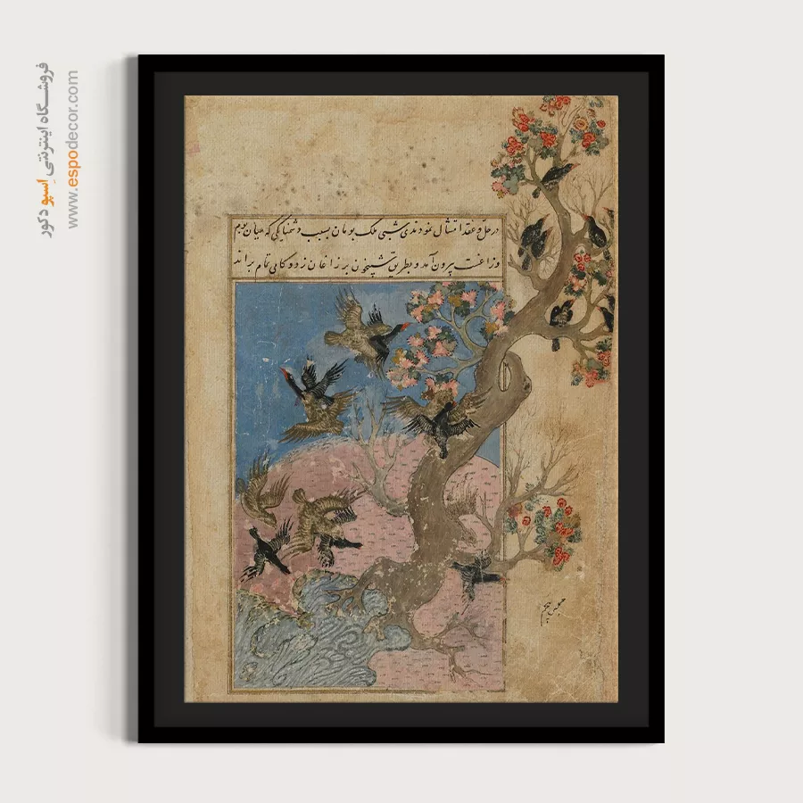 در دل هر نقش و رنگ، قصه‌ای کهن از سرزمین شعر و شکوه نهفته است. این تابلو نقاشی ایرانی برگرفته از اصالت نگارگری و ظرافت مینیاتورهای ماندگار، پلی میان تاریخ و دنیای امروز می‌سازد؛ گویی پنجره‌ای است به جهانی که در آن زیبایی و معنویت هم‌نشین‌اند.هر تابلو، برگ زرینی از نسخ خطی و هنر سنتی ایرانی است؛ سرشار از لطافت خطوط و رنگ‌هایی که به آرامی با چشم و دل سخن می‌گویند. با تماشای آن، می‌توان به عمق فرهنگ ایرانی سفر کرد و لمس کرد که چگونه گذر قرن‌ها نتوانسته فروغ این هنر جاودان را خاموش سازد.این تابلوها بر روی بوم‌های باکیفیت چاپ می‌شوند؛ بافت لطیف بوم و رنگ‌های زنده، جلوه‌ای طبیعی و هنری به اثر می‌بخشند. رنگ‌ها به گونه‌ای انتخاب شده‌اند که درخشان، ماندگار و مقاوم در برابر نور باشند؛ تا سالیان سال، زیبایی اصیل ایرانی در فضای خانه یا محل کارتان بدرخشد.فریم‌های محکم، ساختاری استوار به تابلو می‌بخشند و با طراحی ظریف خود، بر شکوه اثر می‌افزایند. سبک بودن تابلو و امکان نصب آسان، آن را برای هر نوع دکوراسیون مدرن یا کلاسیک مناسب می‌سازد. از اتاق نشیمن تا دفتر کار، این آثار همچون نگینی فاخر بر دیوار خواهند درخشید.هر اثر، فرصتی برای لمس دوباره‌ی هنر نگارگری و مینیاتور ایرانی است؛ هنری که در جزئی‌ترین خطوط، روح شاعرانه ایرانیان را بازمی‌تاباند. این تابلوها نه تنها تزیینی، بلکه یادآور هویت فرهنگی و زیبایی بی‌زمان ایران‌زمین‌اند.اگر به دنبال هدیه‌ای ماندگار یا اثری منحصر به فرد برای فضای زندگی‌تان هستید، این تابلو بوم نگارگری ایرانی انتخابی بی‌همتاست. ترکیب اصالت تاریخی با کیفیت مدرن چاپ، ارزش هنری و زیبایی را در یک قاب جاودانه به شما تقدیم می‌کند.