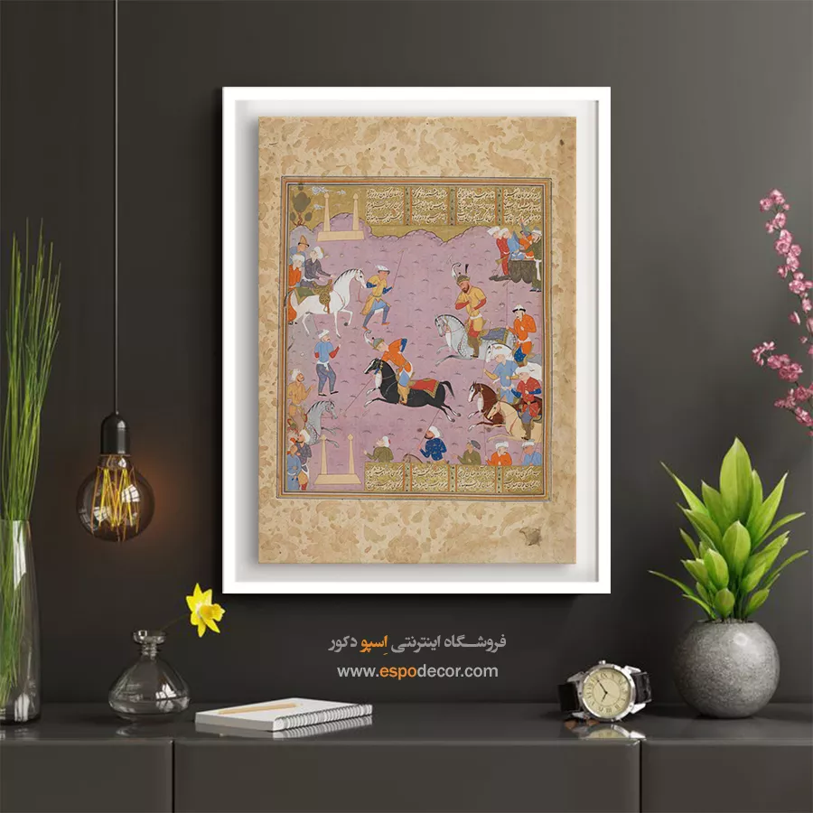 در ظرافت خطوط و درخشش رنگها، روایت هزارساله هنر مینیاتور و نگارگری ایرانی زنده میشود. این تابلو نقاشی ایرانی، یادگاری فاخر از میراث فرهنگی ایران برای خانهای آراسته و روحنواز است.