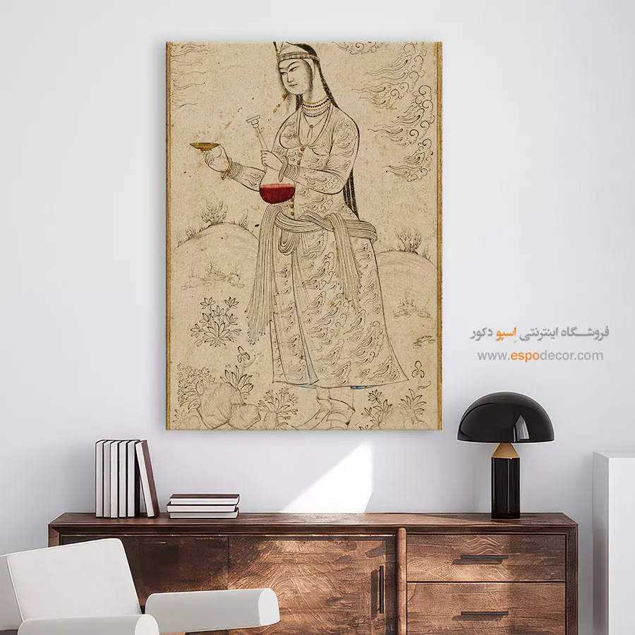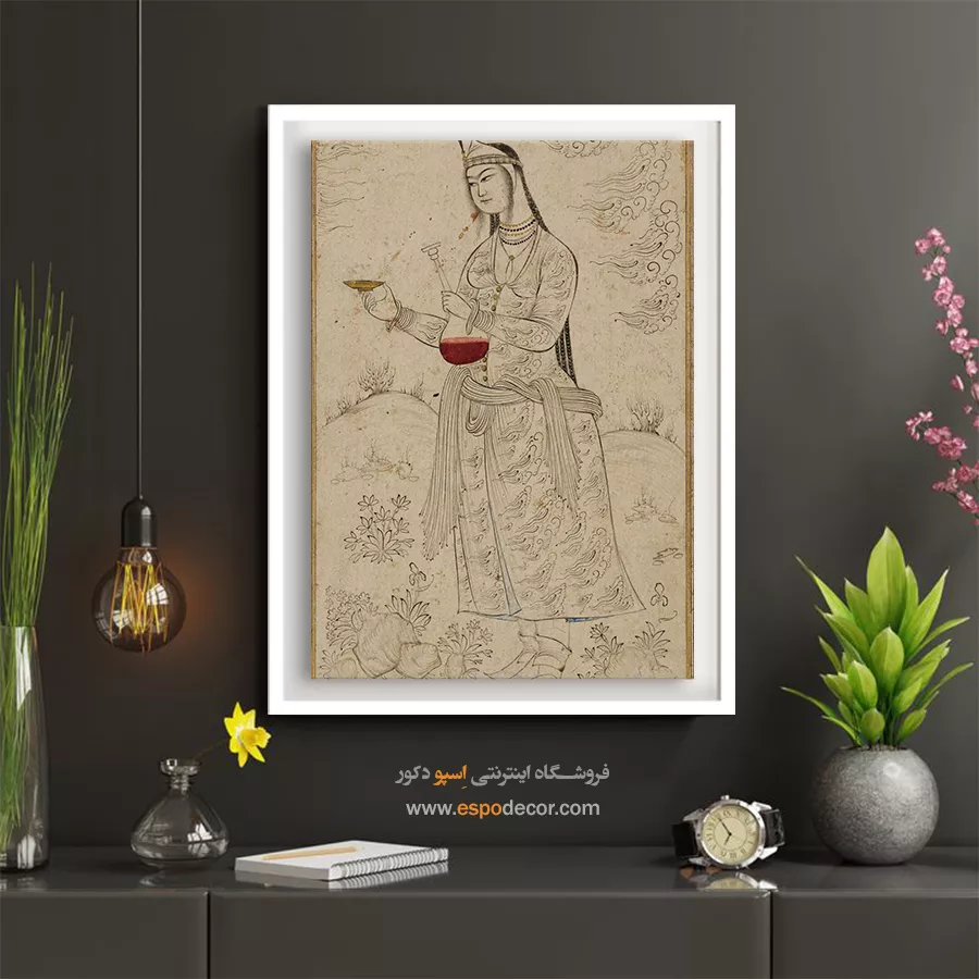 بانویی که جامی در دست دارد – تابلو نقاشی ایرانی