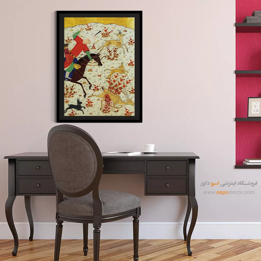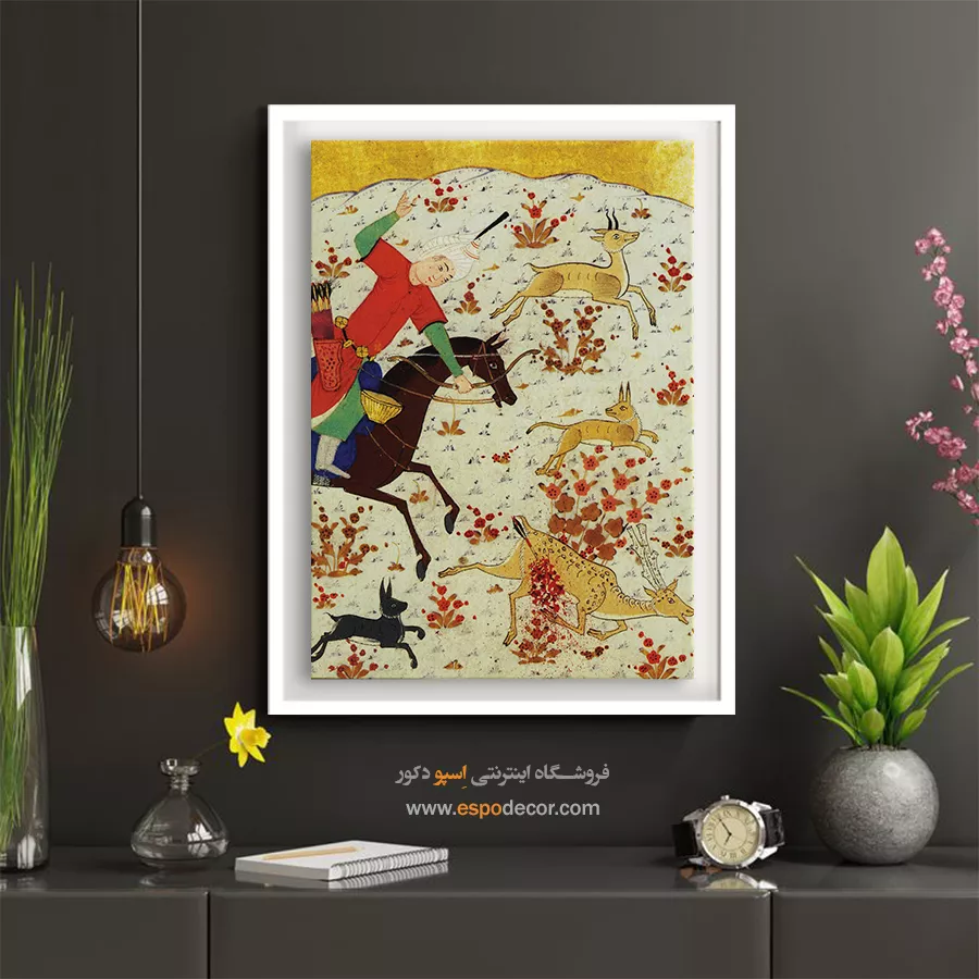 در ظرافت خطوط و درخشش رنگها، روایت هزارساله هنر مینیاتور و نگارگری ایرانی زنده میشود. این تابلو نقاشی ایرانی، یادگاری فاخر از میراث فرهنگی ایران برای خانهای آراسته و روحنواز است.