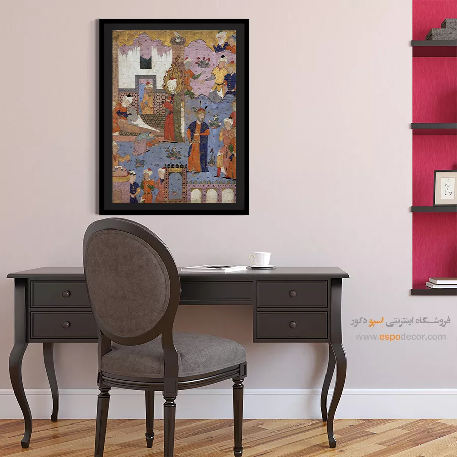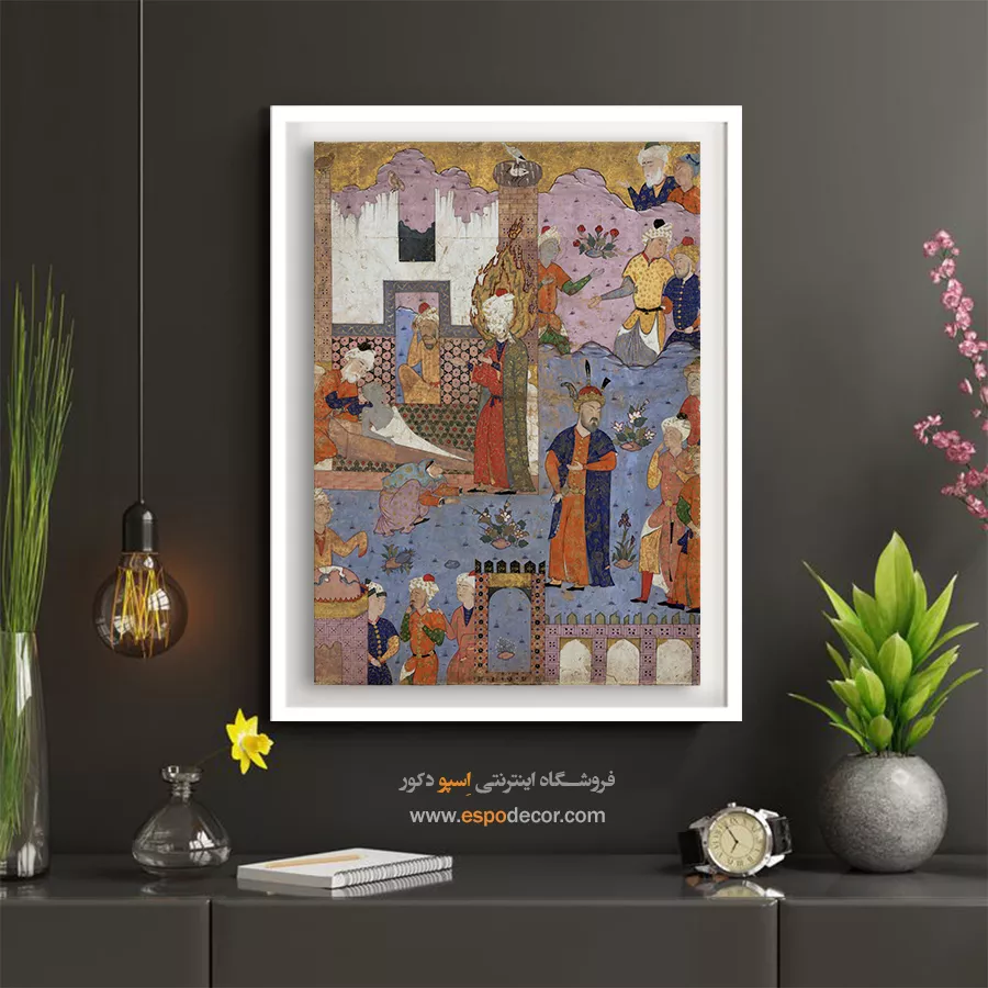 در ظرافت خطوط و درخشش رنگ‌ها، روایت هزارساله هنر مینیاتور و نگارگری ایرانی زنده می‌شود. این تابلو نقاشی ایرانی، یادگاری فاخر از میراث فرهنگی ایران برای خانه‌ای آراسته و روح‌نواز است.