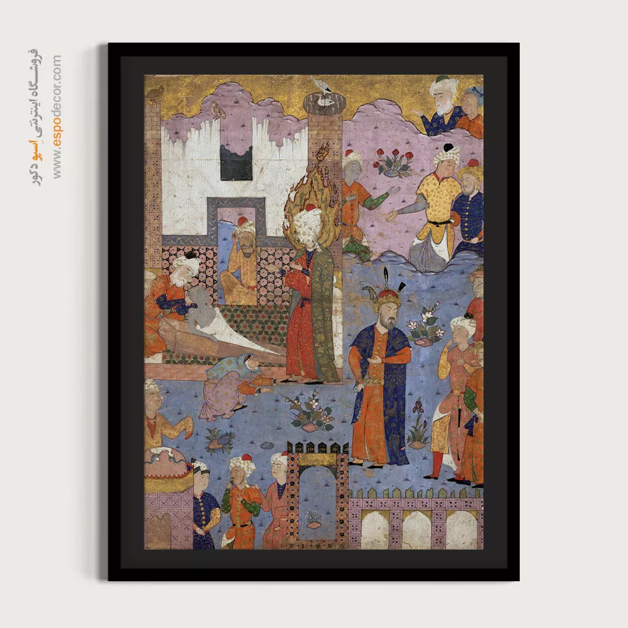 در ظرافت خطوط و درخشش رنگها، روایت هزارساله هنر مینیاتور و نگارگری ایرانی زنده میشود. این تابلو نقاشی ایرانی، یادگاری فاخر از میراث فرهنگی ایران برای خانهای آراسته و روحنواز است.