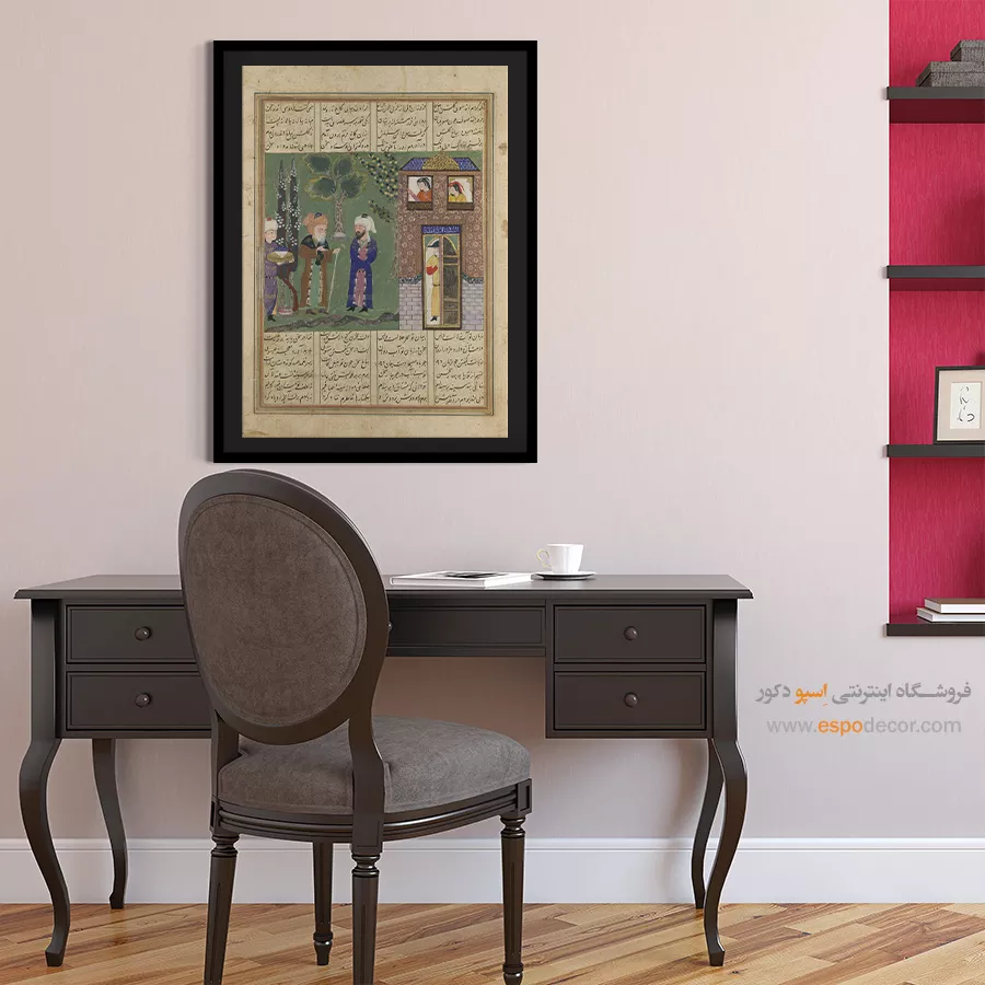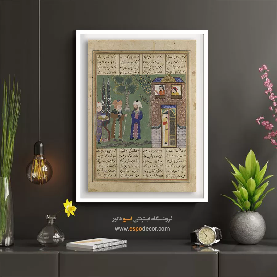 در ظرافت خطوط و درخشش رنگها، روایت هزارساله هنر مینیاتور و نگارگری ایرانی زنده میشود. این تابلو نقاشی ایرانی، یادگاری فاخر از میراث فرهنگی ایران برای خانهای آراسته و روحنواز است.