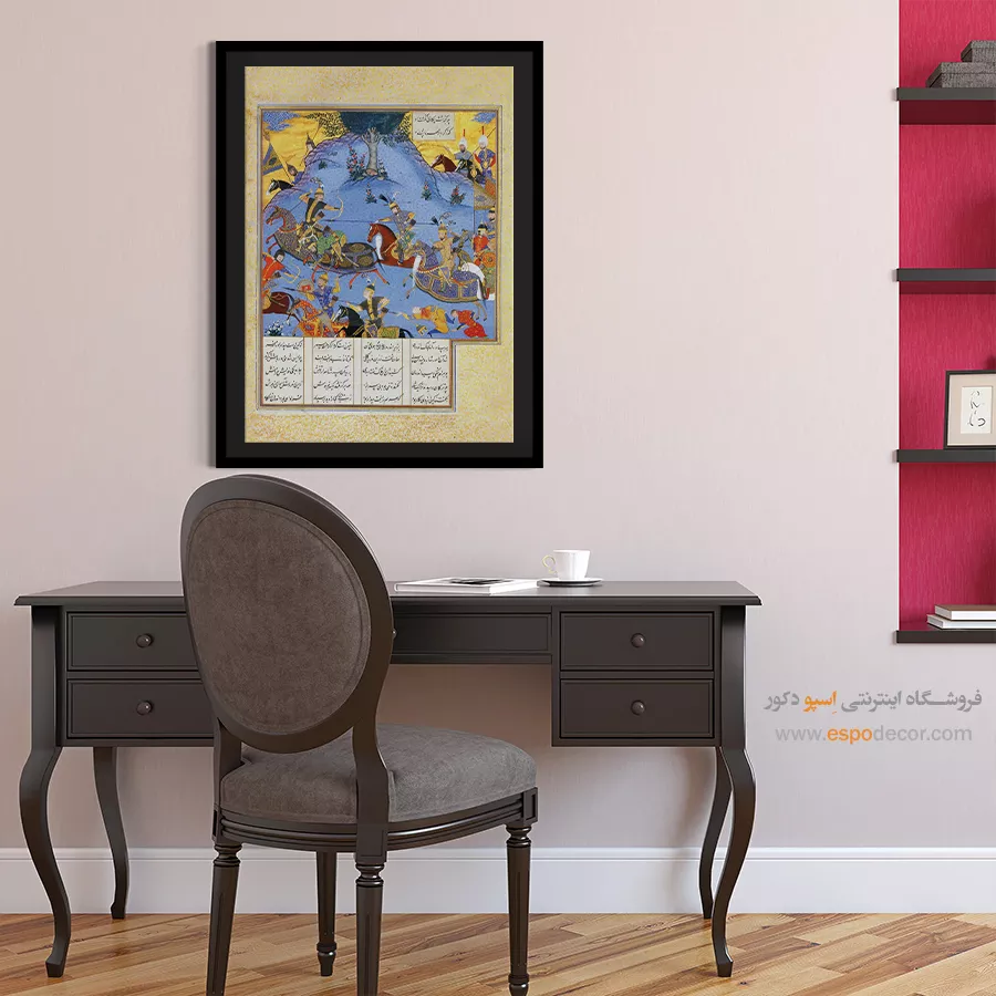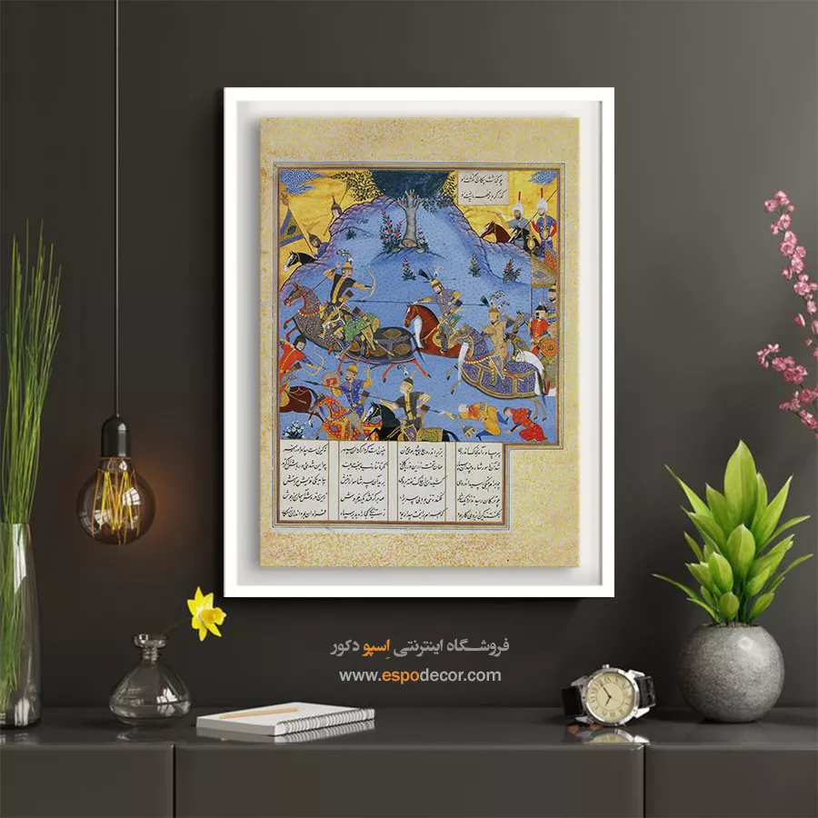 در ظرافت خطوط و درخشش رنگها، روایت هزارساله هنر مینیاتور و نگارگری ایرانی زنده میشود. این تابلو نقاشی ایرانی، یادگاری فاخر از میراث فرهنگی ایران برای خانهای آراسته و روحنواز است.