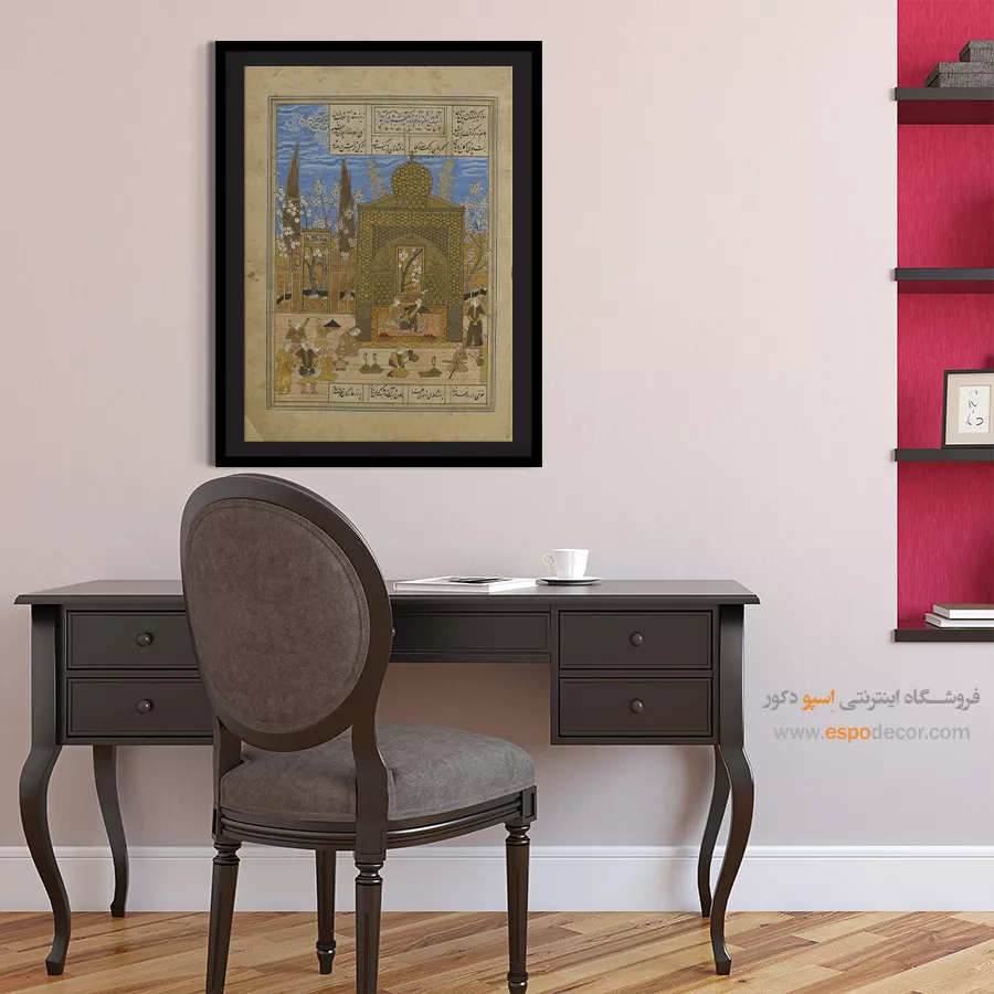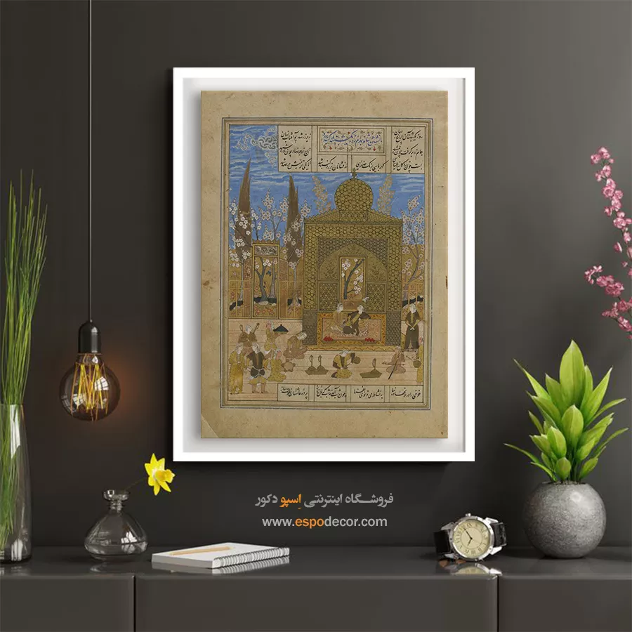 در ظرافت خطوط و درخشش رنگها، روایت هزارساله هنر مینیاتور و نگارگری ایرانی زنده میشود. این تابلو نقاشی ایرانی، یادگاری فاخر از میراث فرهنگی ایران برای خانهای آراسته و روحنواز است.