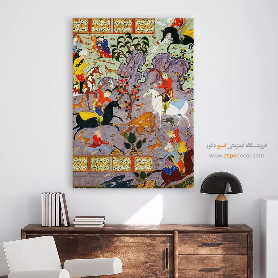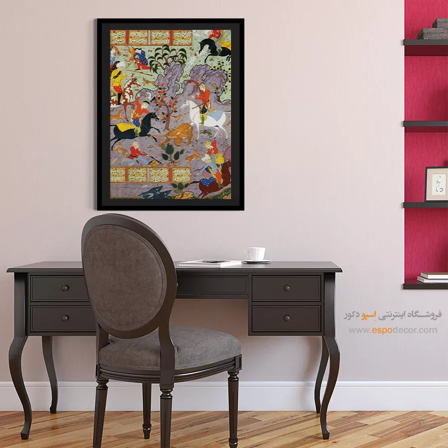 در ظرافت خطوط و درخشش رنگ‌ها، روایت هزارساله هنر مینیاتور و نگارگری ایرانی زنده می‌شود. این تابلو نقاشی ایرانی، یادگاری فاخر از میراث فرهنگی ایران برای خانه‌ای آراسته و روح‌نواز است.