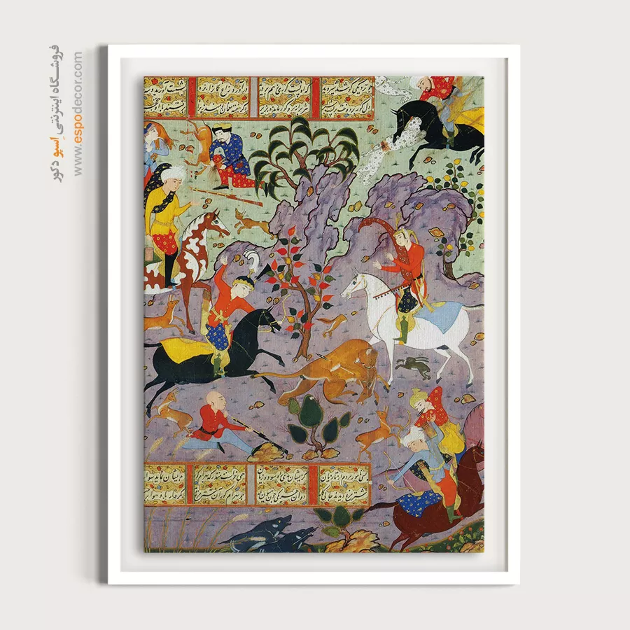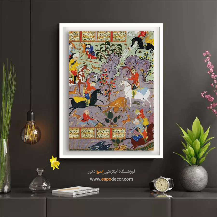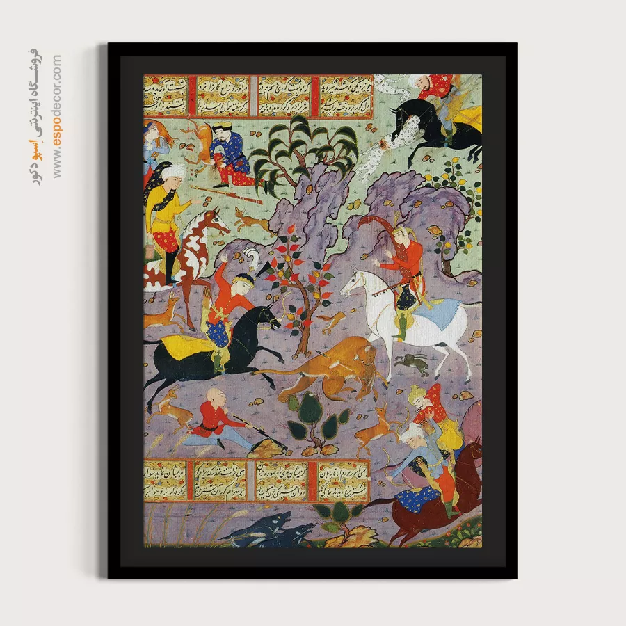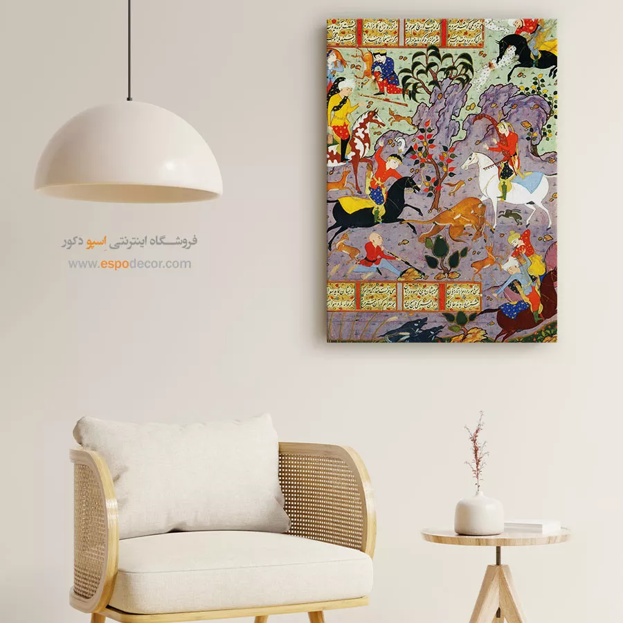 در دل هر نقش و رنگ، قصه‌ای کهن از سرزمین شعر و شکوه نهفته است. این تابلو نقاشی ایرانی برگرفته از اصالت نگارگری و ظرافت مینیاتورهای ماندگار، پلی میان تاریخ و دنیای امروز می‌سازد؛ گویی پنجره‌ای است به جهانی که در آن زیبایی و معنویت هم‌نشین‌اند. هر تابلو، برگ زرینی از نسخ خطی و هنر سنتی ایرانی است؛ سرشار از لطافت خطوط و رنگ‌هایی که به آرامی با چشم و دل سخن می‌گویند. با تماشای آن، می‌توان به عمق فرهنگ ایرانی سفر کرد و لمس کرد که چگونه گذر قرن‌ها نتوانسته فروغ این هنر جاودان را خاموش سازد. این تابلوها بر روی بوم‌های باکیفیت چاپ می‌شوند؛ بافت لطیف بوم و رنگ‌های زنده، جلوه‌ای طبیعی و هنری به اثر می‌بخشند. رنگ‌ها به گونه‌ای انتخاب شده‌اند که درخشان، ماندگار و مقاوم در برابر نور باشند؛ تا سالیان سال، زیبایی اصیل ایرانی در فضای خانه یا محل کارتان بدرخشد. فریم‌های محکم، ساختاری استوار به تابلو می‌بخشند و با طراحی ظریف خود، بر شکوه اثر می‌افزایند. سبک بودن تابلو و امکان نصب آسان، آن را برای هر نوع دکوراسیون مدرن یا کلاسیک مناسب می‌سازد. از اتاق نشیمن تا دفتر کار، این آثار همچون نگینی فاخر بر دیوار خواهند درخشید. هر اثر، فرصتی برای لمس دوباره‌ی هنر نگارگری و مینیاتور ایرانی است؛ هنری که در جزئی‌ترین خطوط، روح شاعرانه ایرانیان را بازمی‌تاباند. این تابلوها نه تنها تزیینی، بلکه یادآور هویت فرهنگی و زیبایی بی‌زمان ایران‌زمین‌اند. اگر به دنبال هدیه‌ای ماندگار یا اثری منحصر به فرد برای فضای زندگی‌تان هستید، این تابلو بوم نگارگری ایرانی انتخابی بی‌همتاست. ترکیب اصالت تاریخی با کیفیت مدرن چاپ، ارزش هنری و زیبایی را در یک قاب جاودانه به شما تقدیم می‌کند.