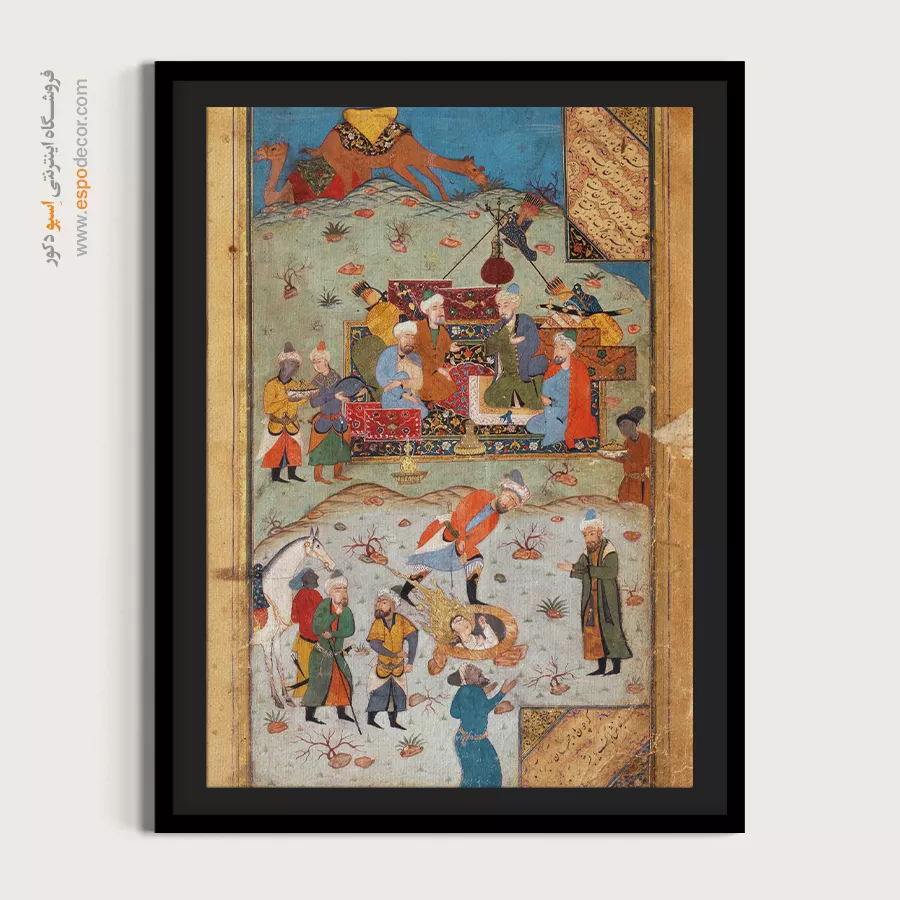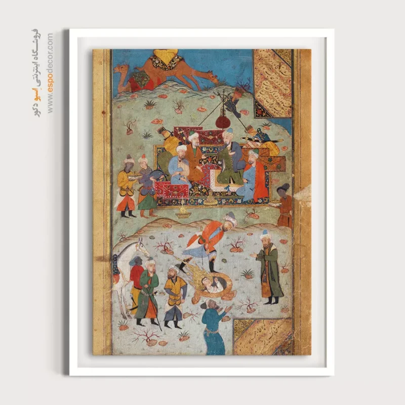 در ظرافت خطوط و درخشش رنگها، روایت هزارساله هنر مینیاتور و نگارگری ایرانی زنده میشود. این تابلو نقاشی ایرانی، یادگاری فاخر از میراث فرهنگی ایران برای خانهای آراسته و روحنواز است.