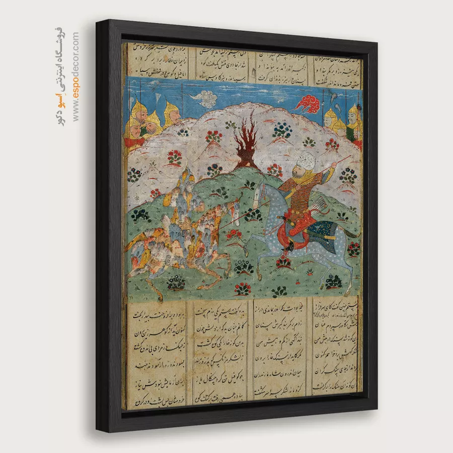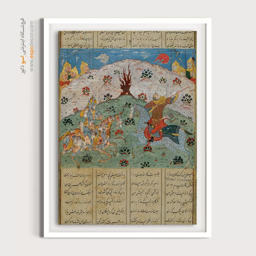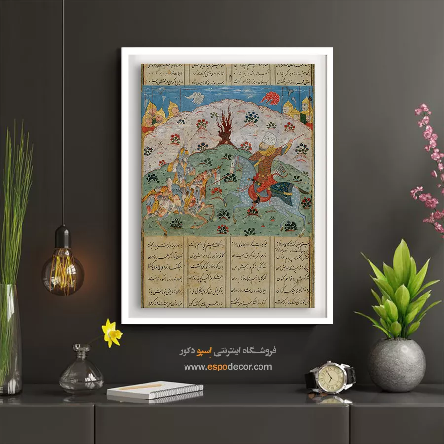در ظرافت خطوط و درخشش رنگها، روایت هزارساله هنر مینیاتور و نگارگری ایرانی زنده میشود. این تابلو نقاشی ایرانی، یادگاری فاخر از میراث فرهنگی ایران برای خانهای آراسته و روحنواز است.