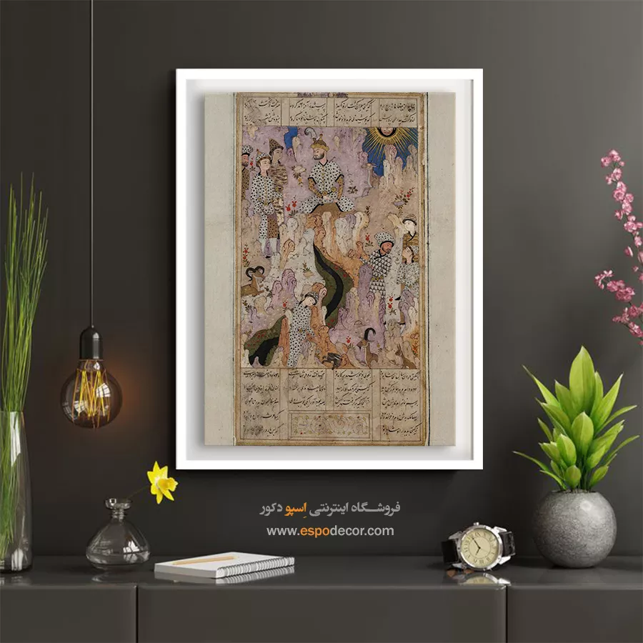 در ظرافت خطوط و درخشش رنگ‌ها، روایت هزارساله هنر مینیاتور و نگارگری ایرانی زنده می‌شود. این تابلو نقاشی ایرانی، یادگاری فاخر از میراث فرهنگی ایران برای خانه‌ای آراسته و روح‌نواز است.