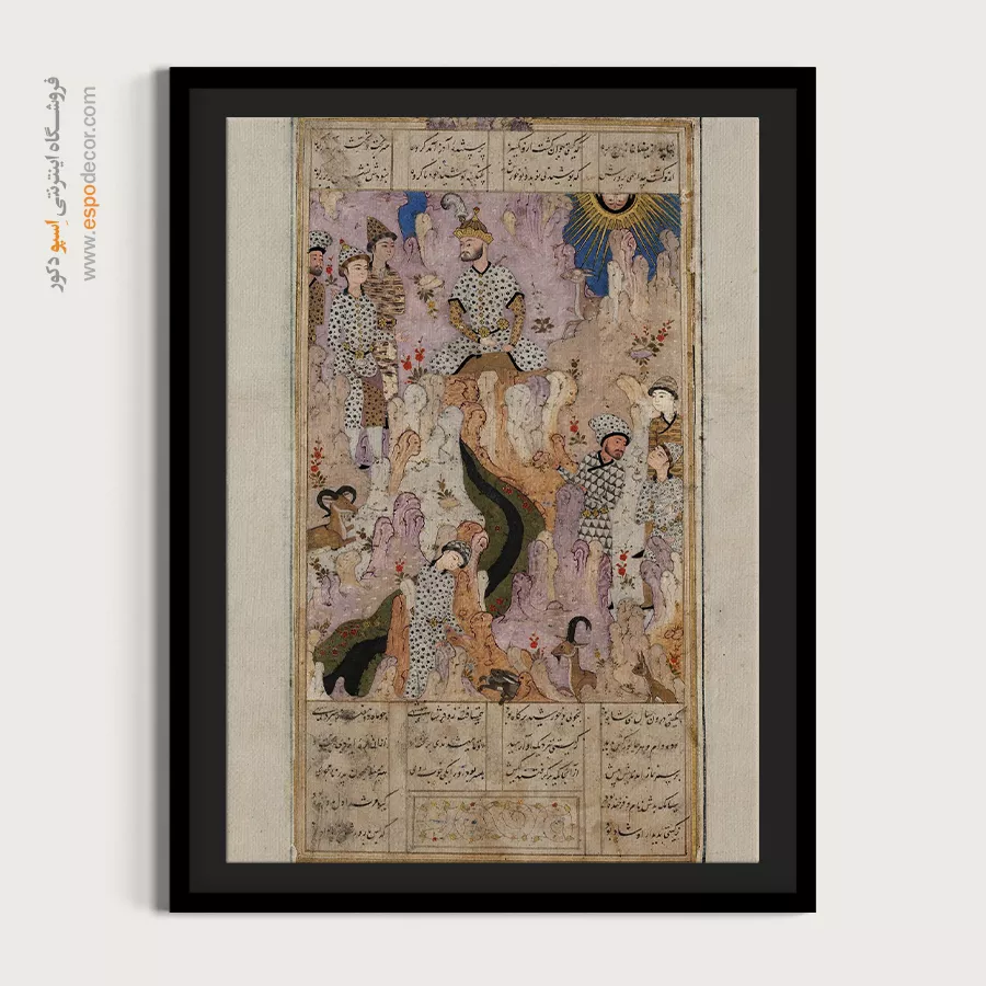 در ظرافت خطوط و درخشش رنگها، روایت هزارساله هنر مینیاتور و نگارگری ایرانی زنده میشود. این تابلو نقاشی ایرانی، یادگاری فاخر از میراث فرهنگی ایران برای خانهای آراسته و روحنواز است.