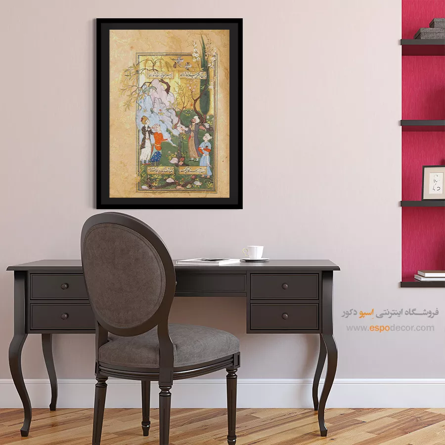 در ظرافت خطوط و درخشش رنگها، روایت هزارساله هنر مینیاتور و نگارگری ایرانی زنده میشود. این تابلو نقاشی ایرانی، یادگاری فاخر از میراث فرهنگی ایران برای خانهای آراسته و روحنواز است.