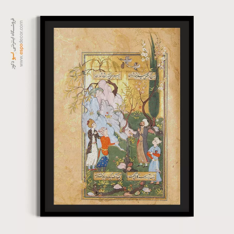 در ظرافت خطوط و درخشش رنگ‌ها، روایت هزارساله هنر مینیاتور و نگارگری ایرانی زنده می‌شود. این تابلو نقاشی ایرانی، یادگاری فاخر از میراث فرهنگی ایران برای خانه‌ای آراسته و روح‌نواز است.