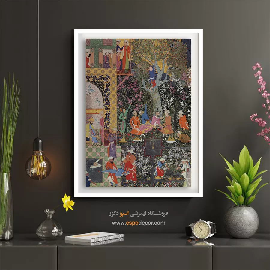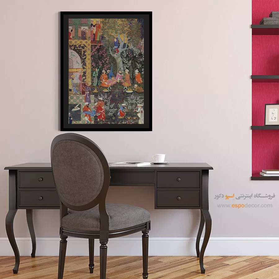 در ظرافت خطوط و درخشش رنگها، روایت هزارساله هنر مینیاتور و نگارگری ایرانی زنده میشود. این تابلو نقاشی ایرانی، یادگاری فاخر از میراث فرهنگی ایران برای خانهای آراسته و روحنواز است.